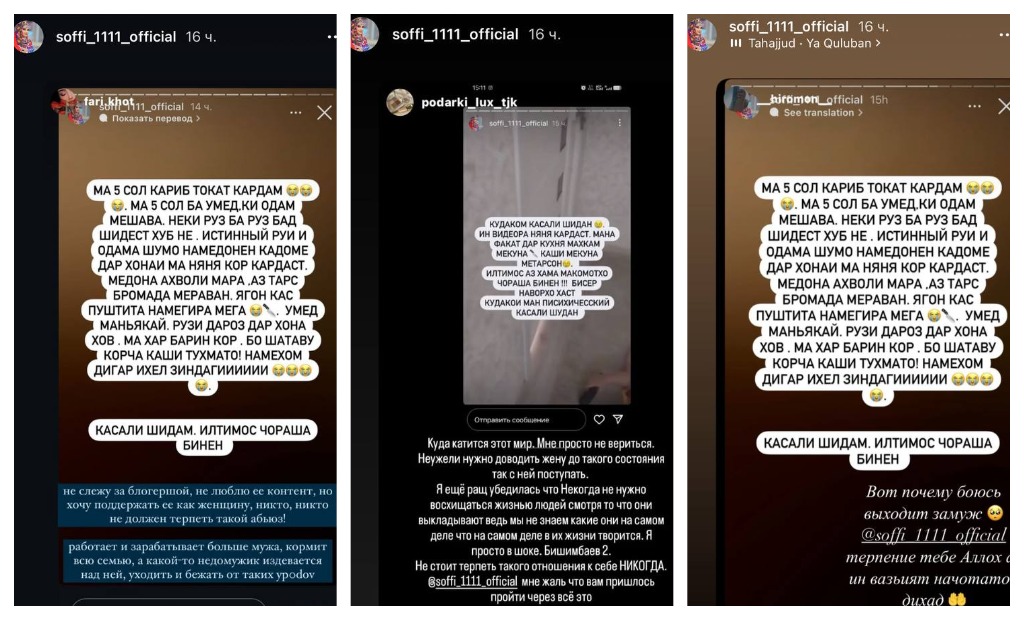 Қаблан, Рухшона Раҳматуллоева рӯзи 12 – уми июн дар саҳифааш навишт, ки дар ҷое пинҳон шудааст, чун шавҳараш ӯро таҳдид ба куштан кардааст.