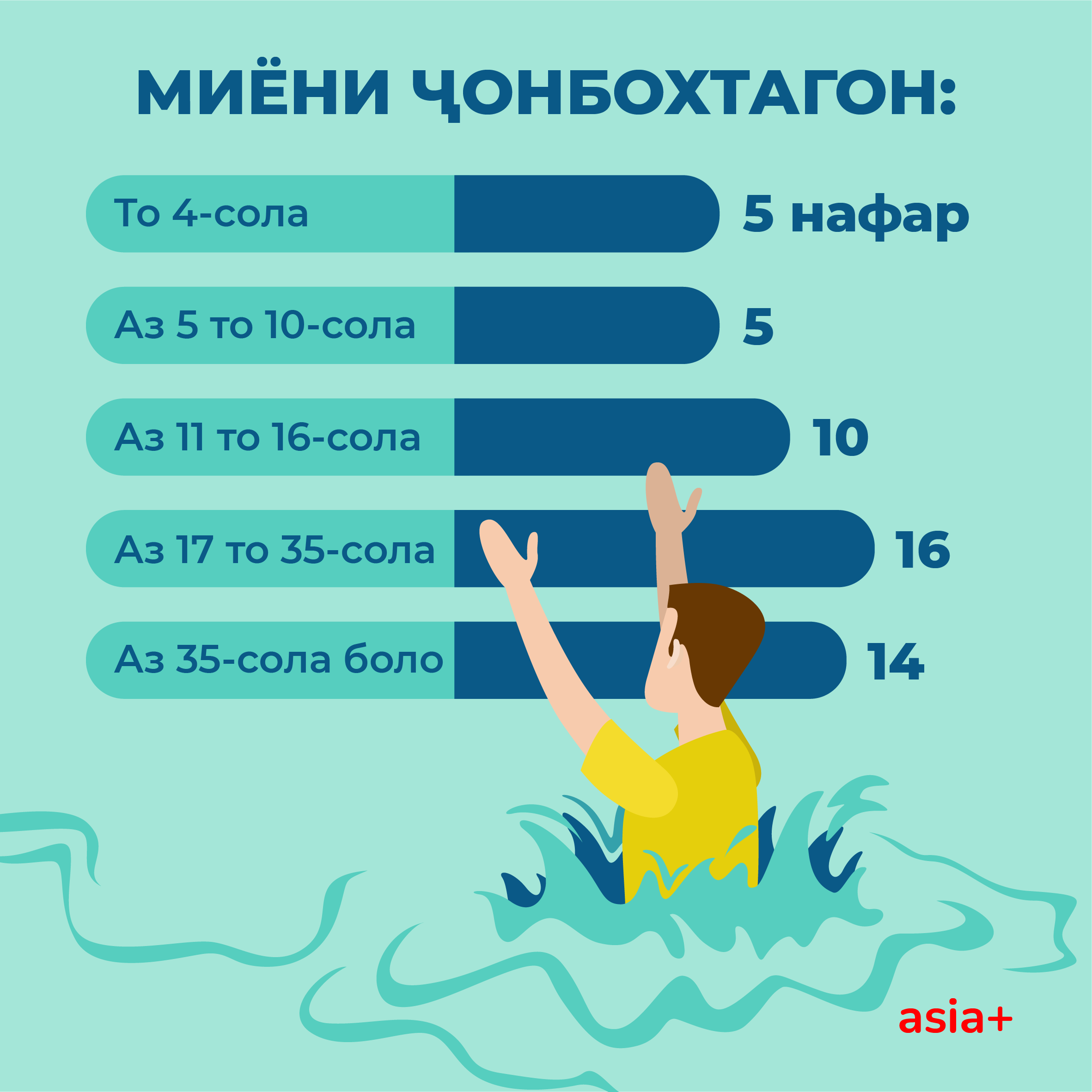 Ғарқшавии сокинон дар кӯлу дарёҳо яке аз мушкилҳои ҷиддӣ дар Тоҷикистон боқӣ мемонад ва боз ҳам ташвишовартар ин аст, ки беш аз 30 дарсади ҷонбохтагон ноболиғони то 16-сола мебошанд.