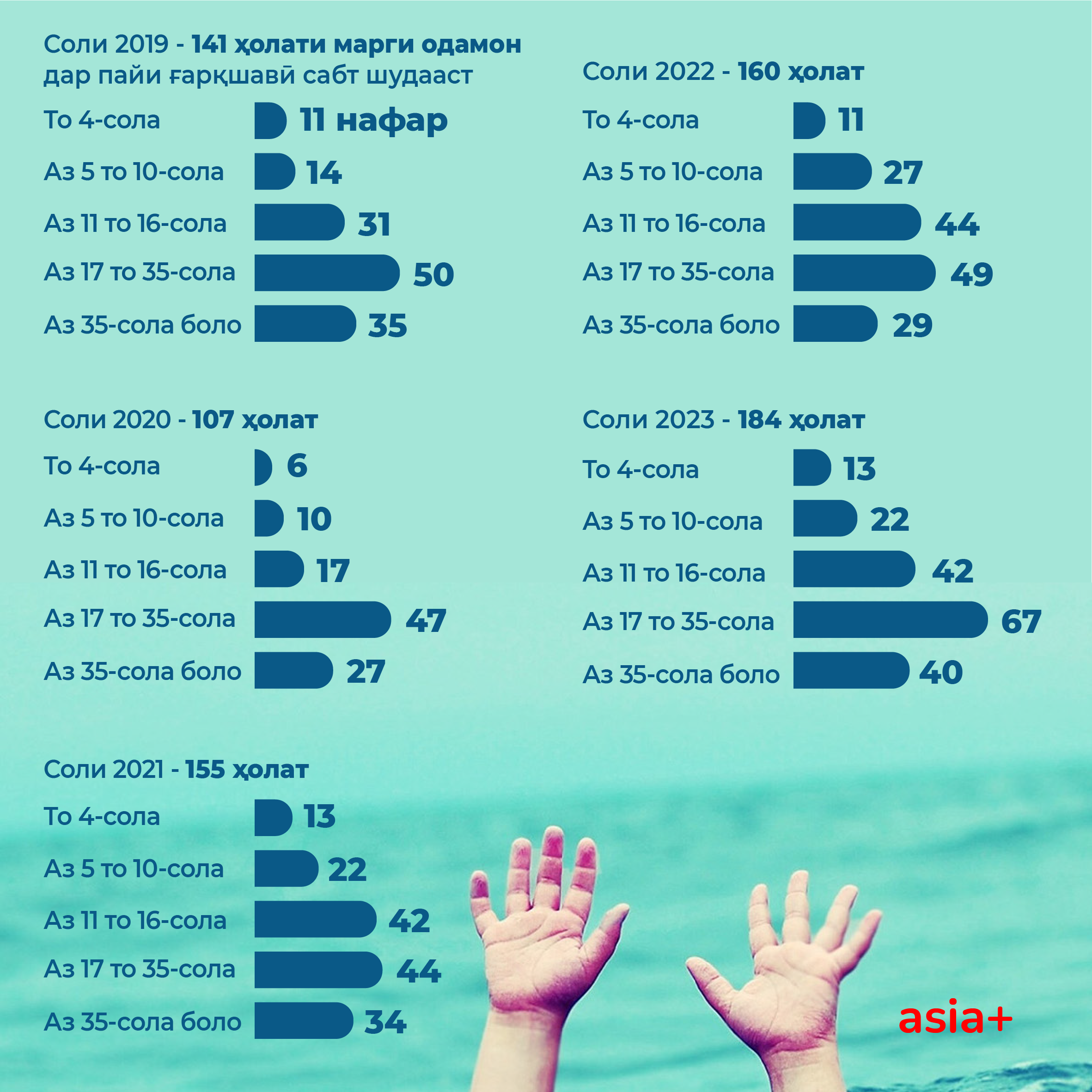 Дар умум, давоми панҷ сол (2019-2023) дар кӯлу дарёҳои кишвар бо шумули кӯдакону наврасон 747 нафар ғарқ шудаанд.