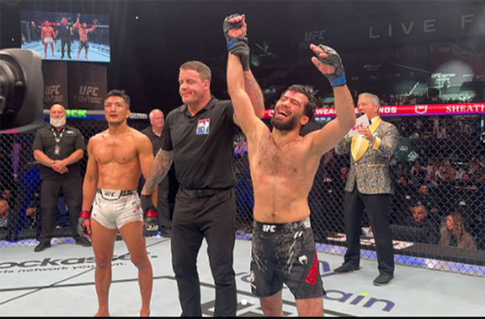 Дар мусобиқаи UFC on ABC 6 дар Ар-Риёз (Арабистони Саудӣ) дар вазни сабуктарин варзишгари Тоҷик Муин Ғафуров (UFC 1-2, 19-6) бо намояндаи Кореяи Ҷанубӣ Кюнг Хо Канг (UFC 8-5-1, 19-12) дар се арунд қувваозмоӣ намуда, бо қарори якдилонаи доварон (ҳамаи доварон – 30-27-ӣ) пирӯз дониста шуд.