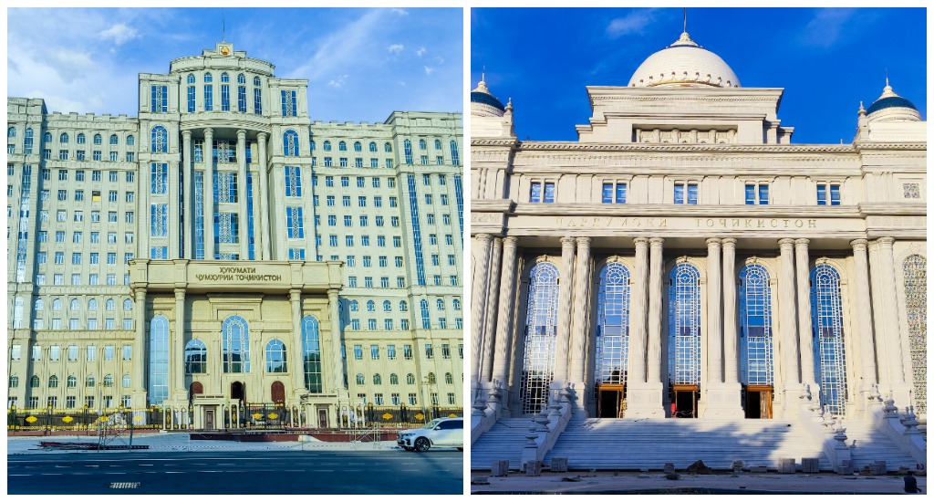 Дар лоиҳаҳои бунёди биноҳои парлумон ва ҳукумати Тоҷикистон намои онҳо бо истифодаи унсурҳои миллӣ бо санъати баланди меъмории муосир таҳия шуда, бо услуби хос ва нақшу нигор мувофиқ сохта мешавад.