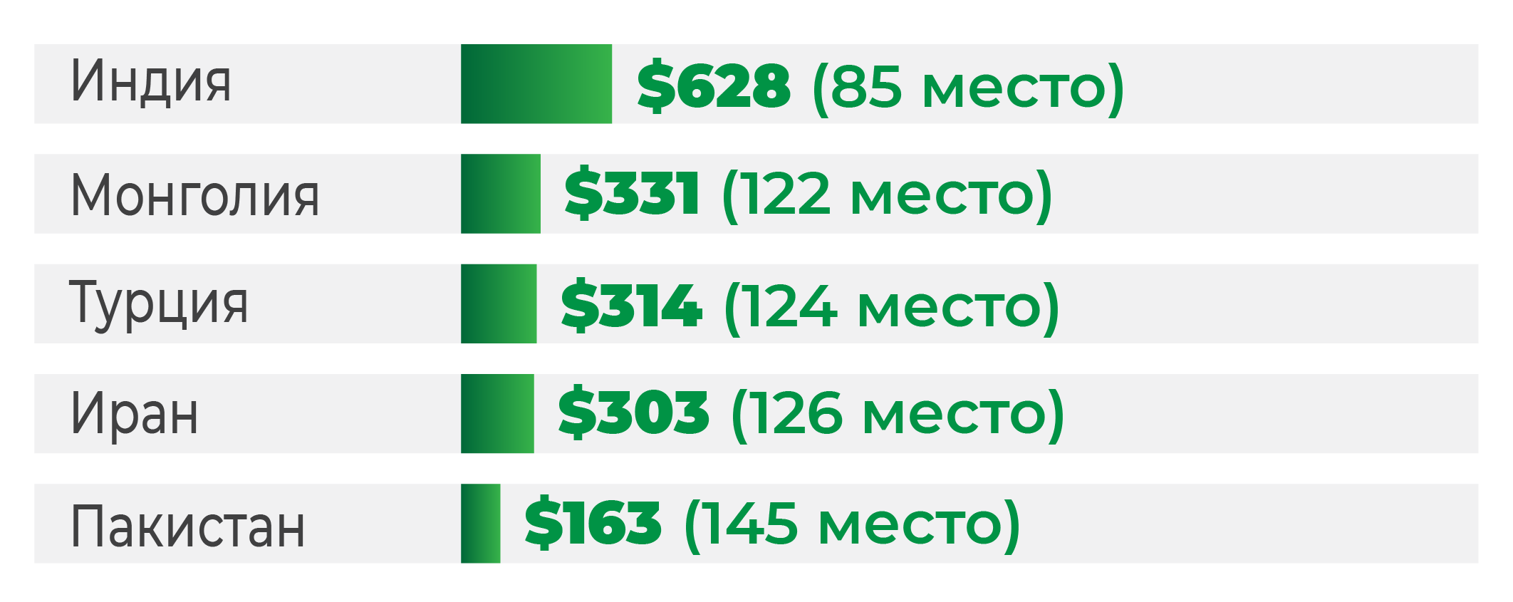 Дар дигар кишварҳо музди меҳнати миёна нисбатан пасттар аст: