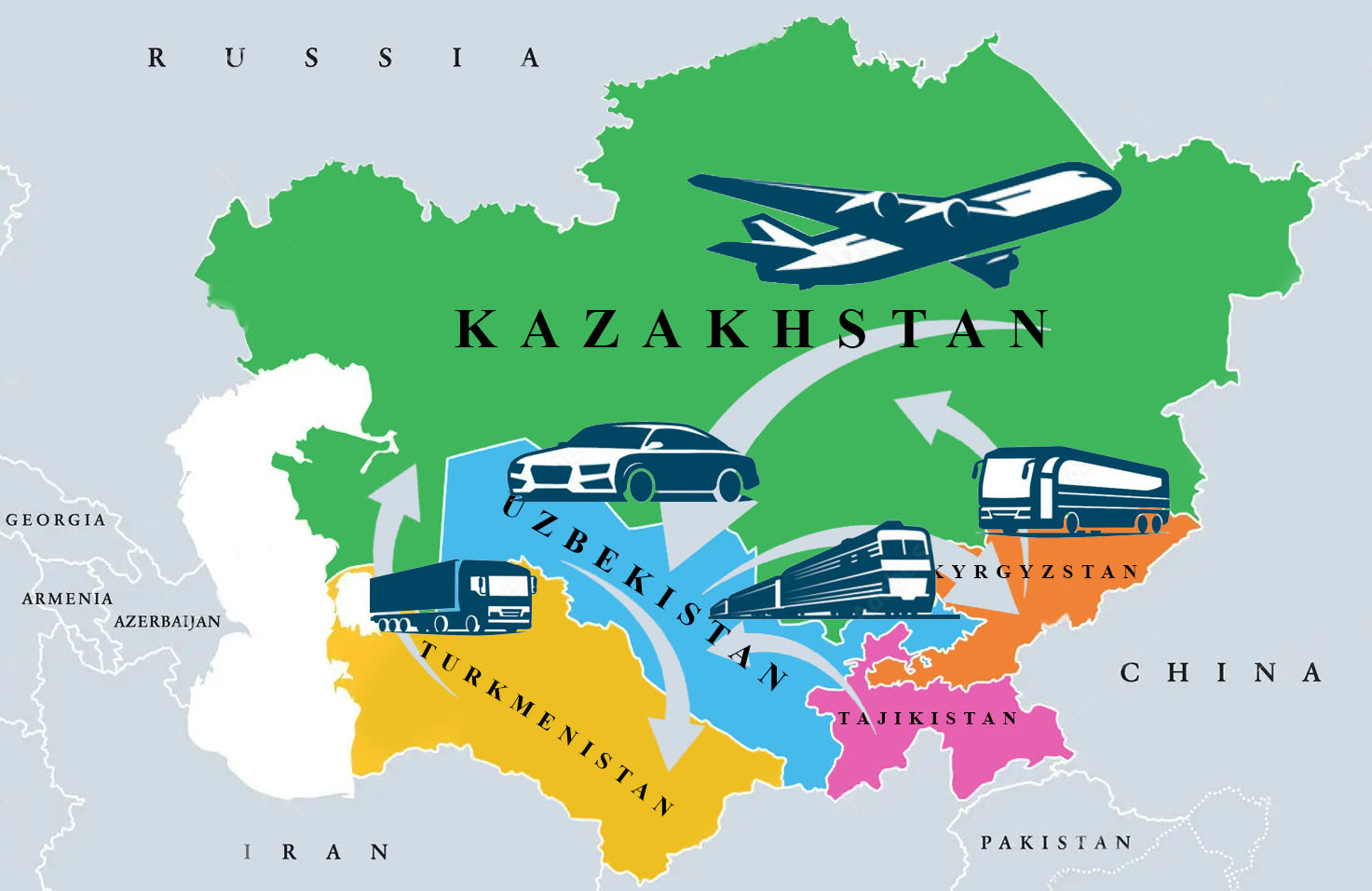 Осиёи Марказӣ ягона минтақаест дар ҷаҳон, ки кишварҳои он ба уқёнуси роҳи баромад надоранд. Равуо ва логистика байни давлатҳо бо роҳҳои заминӣ ва ҳавоӣ сурат мегирад. Аммо сарфи назар аз сарҳадҳои умумӣ, дар чанде аз ҳолатҳо рафтан ба кишвари ҳамсояи наздиктарин хеле душвор ва баъзан ҳатто умуман ғайриимкон аст.