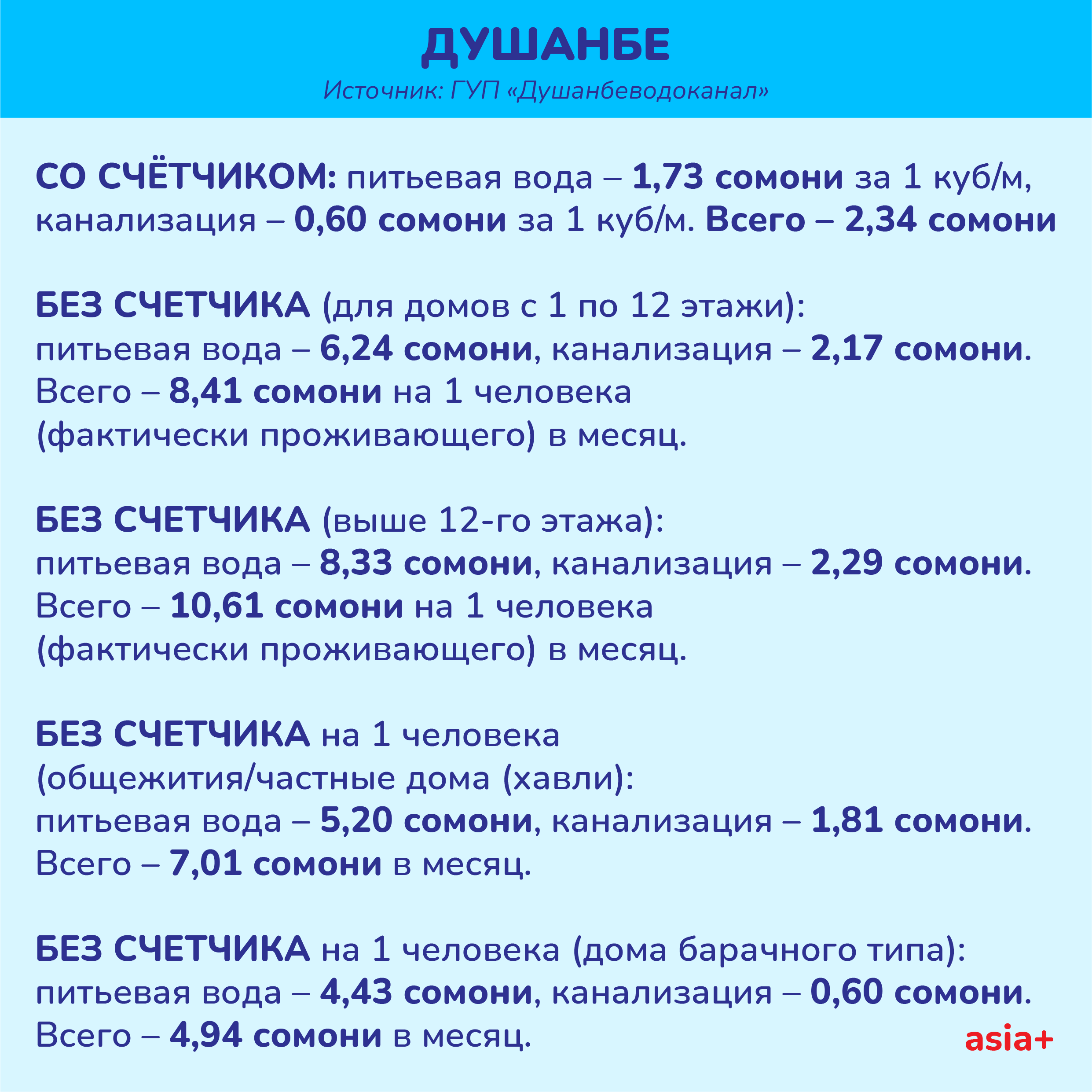 "Дар ҳавои гарм сокинон обро натанҳо барои эҳтиёҷоти рӯзгор, балки барои об додани боғу шустани қолинҳо ва дигар корҳои дуюмдараҷа истифода мебаранд. Сарфи назар аз насби ҳисобкунакҳо, бисёриҳо ҳанӯз ҳам обро аз меъёр беҳад зиёд истифода мебаранд ва обро аз таҳхонаҳо мегиранд, ки дар онҳо ҳисобкунакҳо нестанд. Ин вазъ ба низоми обрасонӣ сарбории зиёд меорад", – шарҳ медиҳад мутахассис.