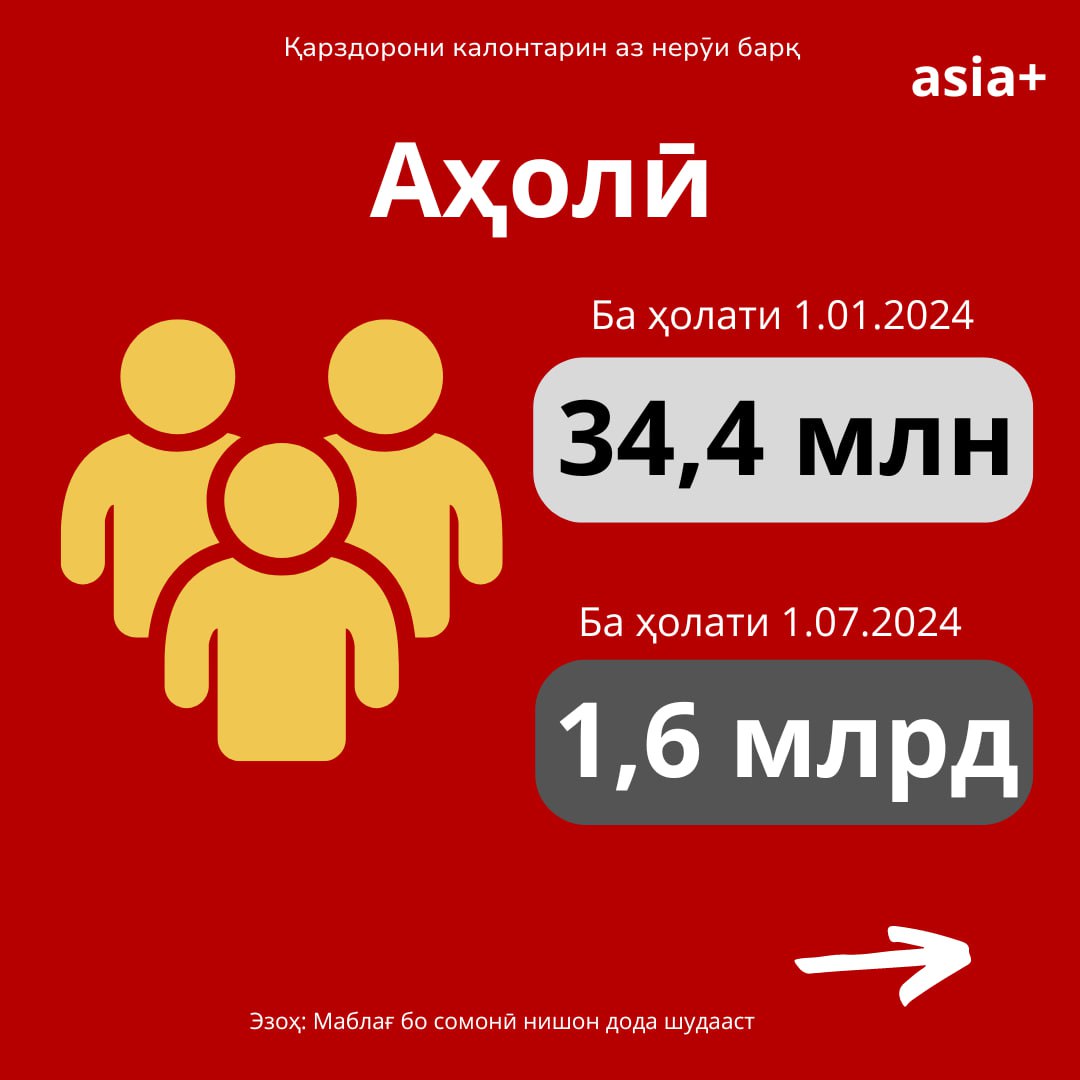 Дар зинаи аввали қарздорон истеъмолгарони маишӣ (аҳолӣ) қарор дорад, ки қарзи умумиаш беш аз 1 млрд 626,4 млн сомонӣ (ҳудуди 153 млн доллар)-ро ташкил медиҳад.