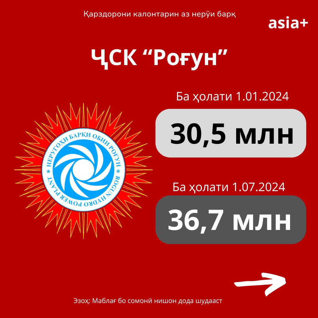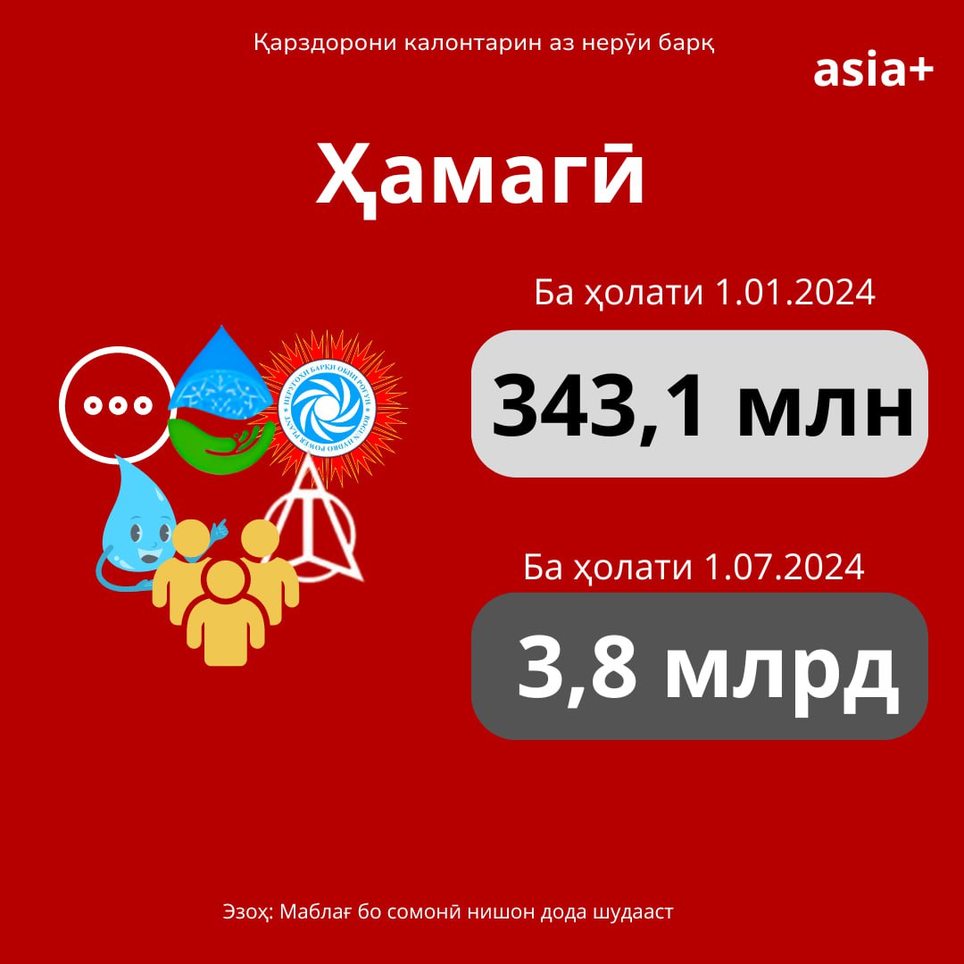 Қарзи дебиторӣ аз истифодаи барқ то 1 июли соли равон бо назардошти солҳои пешин 3 млрд 831,3 млн сомонӣ (ҳудуди 360 млн доллар)-ро ташкил медиҳад. Дар ин бора Вазорати энергетика ва захираҳои оби Тоҷикистон хабар медиҳад.