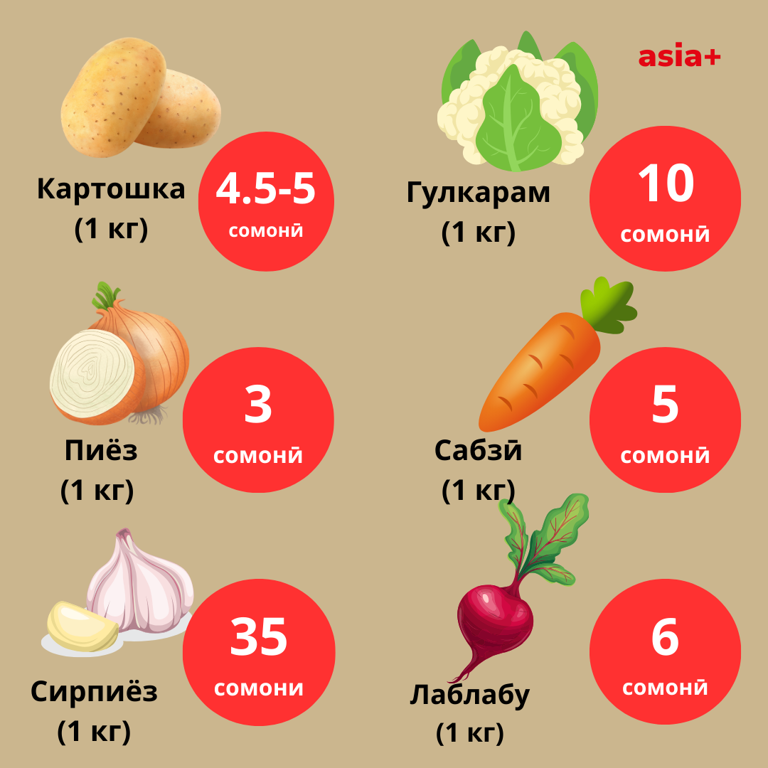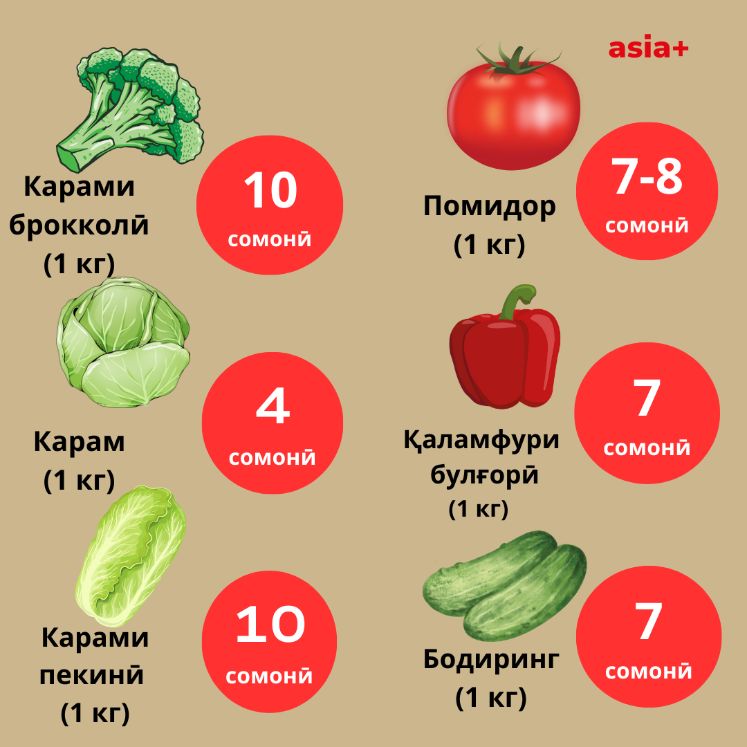 Ҳамчунин, танҳо дар як моҳи сол равон- июл нархи сабзавот аз қабили сабзӣ 10,4%, пиёз 8,9 карам 12,6%, чакка 11,1%, шакар 1,2 % боло рафтааст.