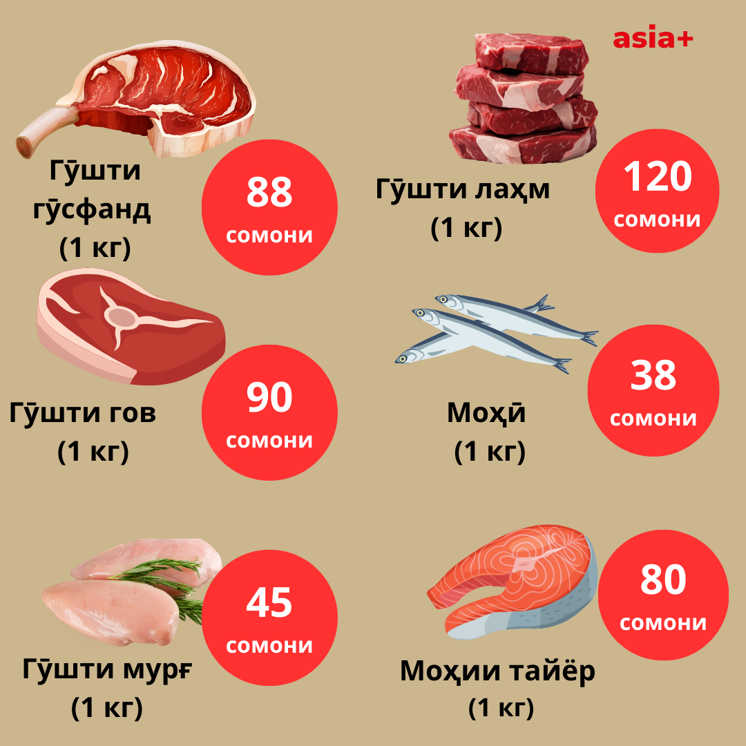 Ба иттилои Агентии омори назди президенти Тоҷикистон нархи гӯшт дар як моҳ (июл нисбат ба июн) 13% ва нисбат ба соли 2023 қариб 30% афзоиш ёфтааст.