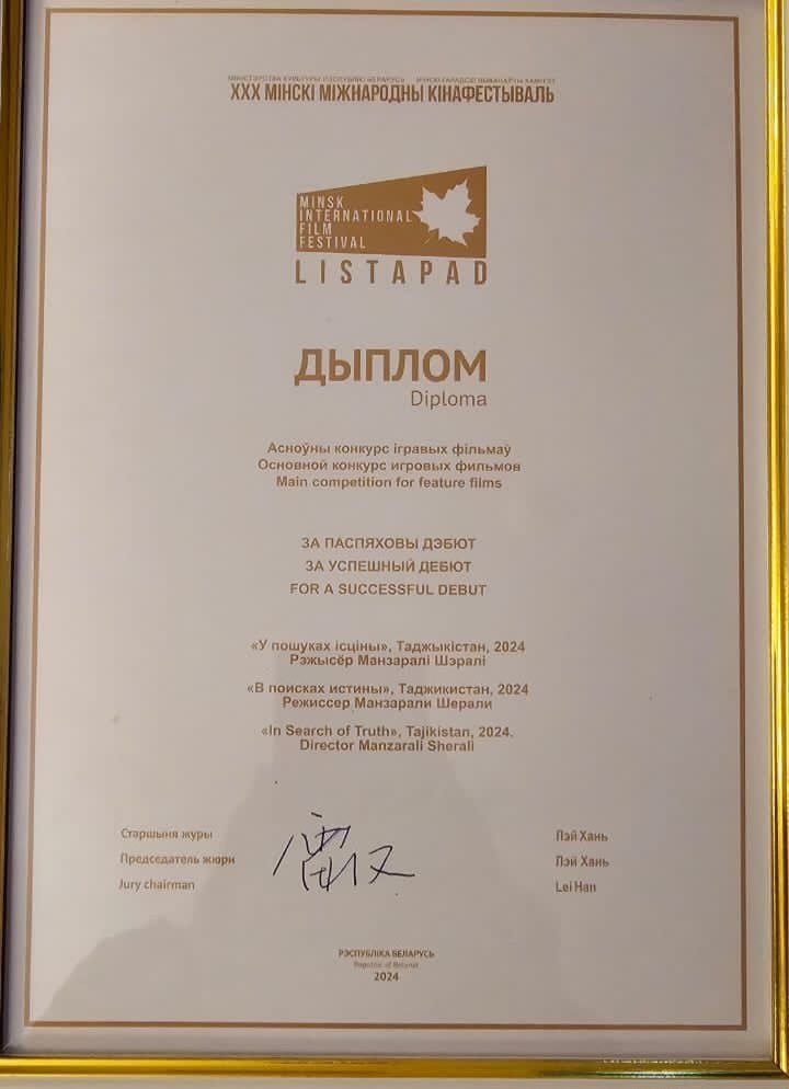 Филми ҳунарии “Дар талоши ҳақиқат”-и коргардони тоҷик Манзаралӣ Шералӣ дар синамоҷашнвораи ХХХ байналмилалии “Листопад” соҳиби диплом гардид. Дар ин хусус муассисаи давлатии “Тоҷикфилм” хабар медиҳад.