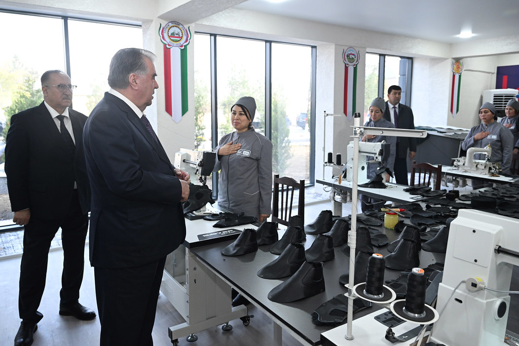 Ҳамин тавр, рӯзи 18-уми ноябр Эмомалӣ Раҳмон дар ноҳияи Бобоҷон Ғафуров ба фаъолияти корхонаи истеҳсоли пойафзоли ҶДММ “Фароғатбону” оғоз бахшидааст.