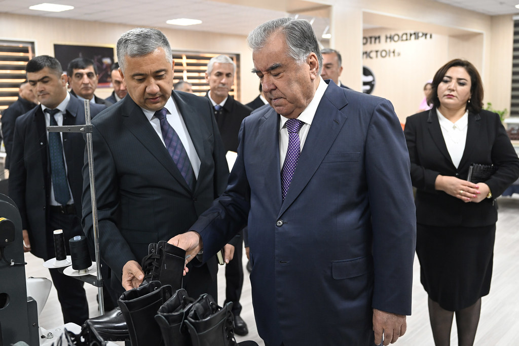 “Сарвари давлат зимни боздид аз шароити корӣ ва раванди истеҳсолот дар коргоҳ, ба сифати маҳсулоти он баҳои баланд дода, ба фаъолият пардохтани корхонаи пойафзолро дар ноҳияи Бобоҷон Ғафуров иқдоми ибратбахш номиданд”, – омадааст дар хабар.