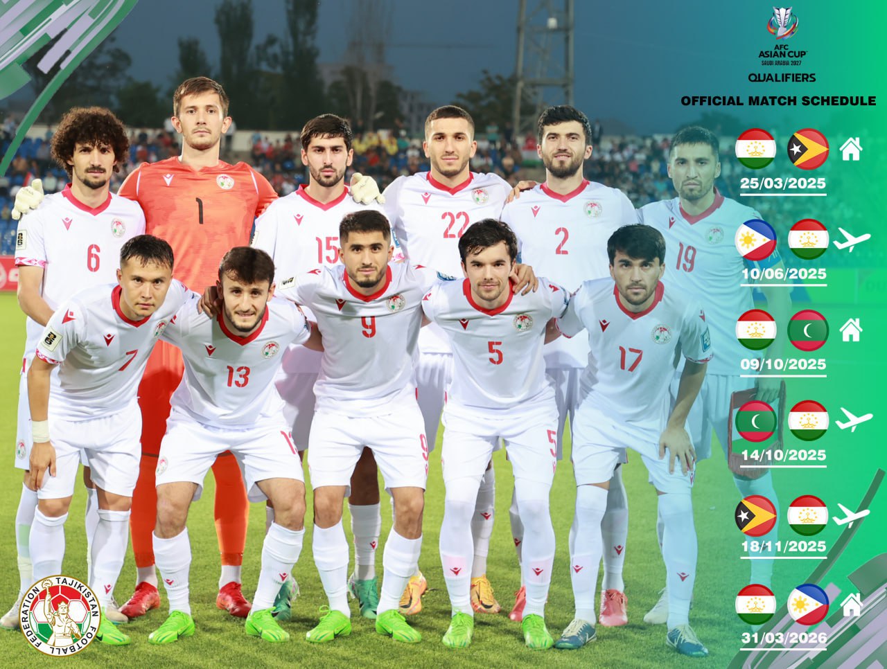 Тими милли футболи Тоҷикистон дар марҳилаи интихобии Ҷоми Осиё-2027 дар гурӯҳи "А" бо мунтахабҳои Филиппин, Малдив ва Тимори Шарқӣ бозӣ мекунад.