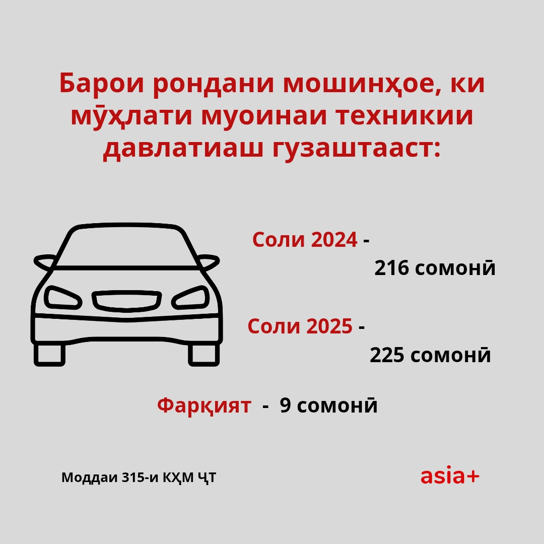 Ин баландшавии нархи ҷарима ба зиёд шудани нишондиҳанда барои ҳисобҳо дар кишвар рабт дорад. Дар соли 2025-ум 1 нишондиҳанда барои ҳисобҳо ба 75 сомонӣ баробар шуд. Соли 2024 он 72 сомонӣ буд.