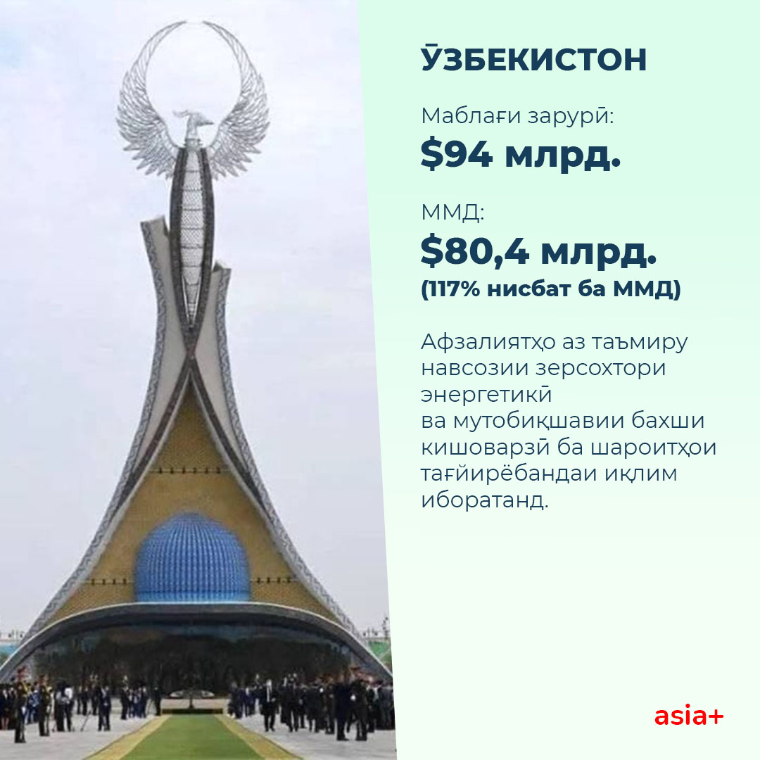 Тибқи гузориш дар бораи талабот ба маблағгузории устувор, кишварҳои Осиёи Марказӣ барои татбиқи ислоҳоти иқлимӣ ва мутобиқшавӣ ба тағйироти иқлим бо мушкилоти бузурги молиявӣ дучор мешаванд.