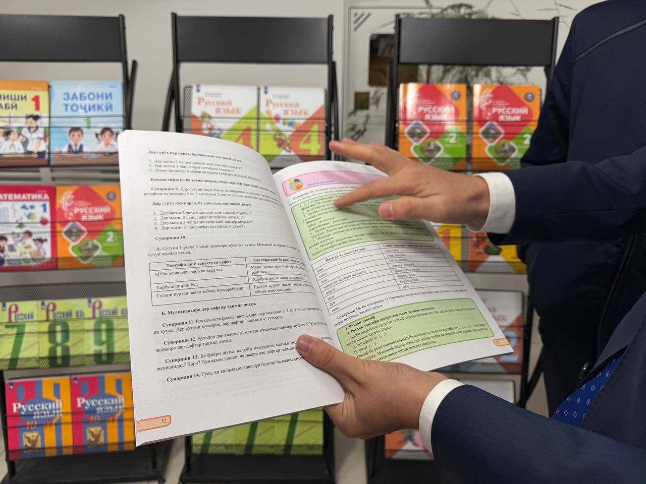 “Масалан, дар китоби дарсии забони русӣ барои синфи 2 баъди навиштаи “слушай и повторяй вслед за диктор” QR рамз гузошта шудааст. Вақте ба ин рамзҳо ворид мешавед, он ҷо ба садо дастрасӣ пайдо мекунед, ки хонанда метавонад тарзи талаффузро низ омӯзад. Ин барои хонандаи имрӯзи мо бисёр зарурат дорад”, – тавзеҳ дод вазир.