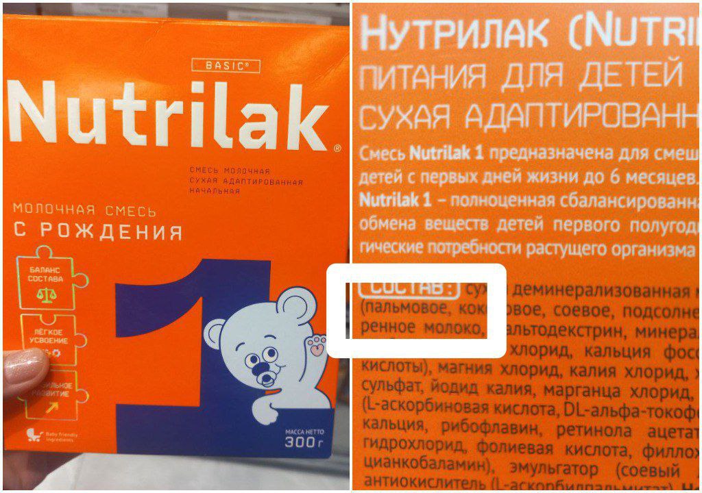 Аммо корбарон ба "Азия-Плюс" шикоят ирсол карданд, ки дар таркиби ғизои кудаконаи "Nutrilak" равғани нахл ҳаст. Мо аз фурӯшгоҳҳои пойтахт дурустии ин иттилоъро санҷидем, ки воқеан ин равған дар таркиби ин навъи ғизои кӯдакона истифода шудааст.