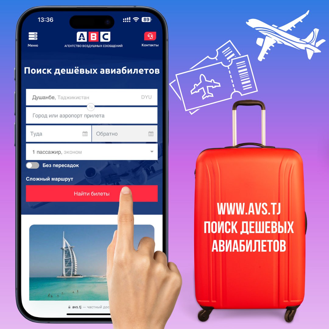 Сомонаи avs.tj – интихоби мувофиқ барои сафарҳои бароҳат ва бехатар! Аз хона набаромада, танҳо дар чанд дақиқа барои сафар ба тамоми гӯшаҳои ҷаҳон чипта фармоиш диҳед.