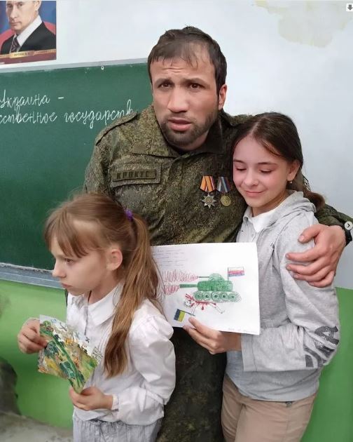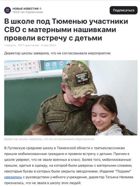 Ин дар ҳолест, ки шакли оригиналии акси мазкур (инҷо (бойгонӣ), инҷо (бойгонӣ), инҷо (бойгонӣ) нашр шудааст ва аз натиҷаи вохӯрии иштирочиёни ҷанги Русия дар Украина бо хонандагони мактабе дар Тюмен бардошта шудааст.