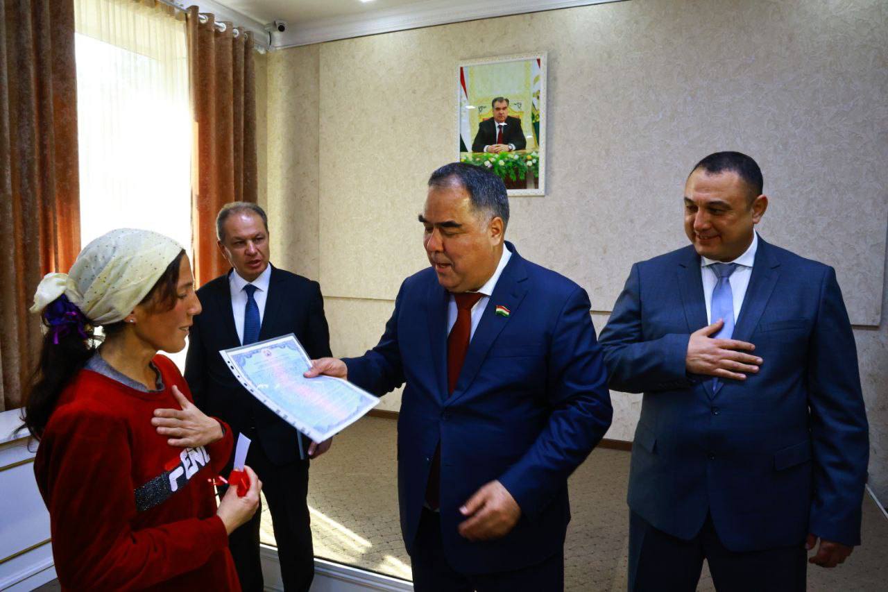 Дар хабарномае, ки дар ин бора ҳукумати вилояти Суғд нашр кардааст, омадааст, “аснои суҳбат бо сокинон роҳбари вилоят онҳоро барои соҳиб шудан ба хонаҳои нав табрик карда, иброз дошт, ки давлат ва Ҳукумати мамлакат қишри осебпазири ҷомеаро мунтазам дастгирӣ менамояд.”