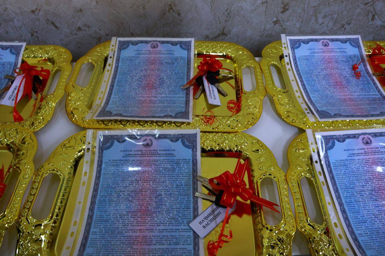 Манбаъи мо аз ин соҳибкор Акмалҷон Шокиров, роҳбари ширкати “Мерос” ном бурд, ки 5 оилаи пешқадами ширкати мазкур ва 5 оилаи ниёзманд хона тақдим кард. Худи ӯ низ зимни тақдими хонаҳо ҳузур дошт.