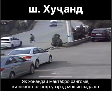 Дар навор, ки се рӯз боз дар шабакаҳои иҷтимоӣ мечархад, дида мешавад, ки як писарча, ки дар тан либоси мактабӣ дорад, мехоҳад аз роҳ гузарад, аммо як мошин бо суръати баланд писарро мезанад ва суръатро паст карда натавониста, чанд метр бо худ мебарад. Аксари корбарони шабкаҳои иҷтимоӣ аз вазъи саломатии ин писар нигаронӣ карданд.