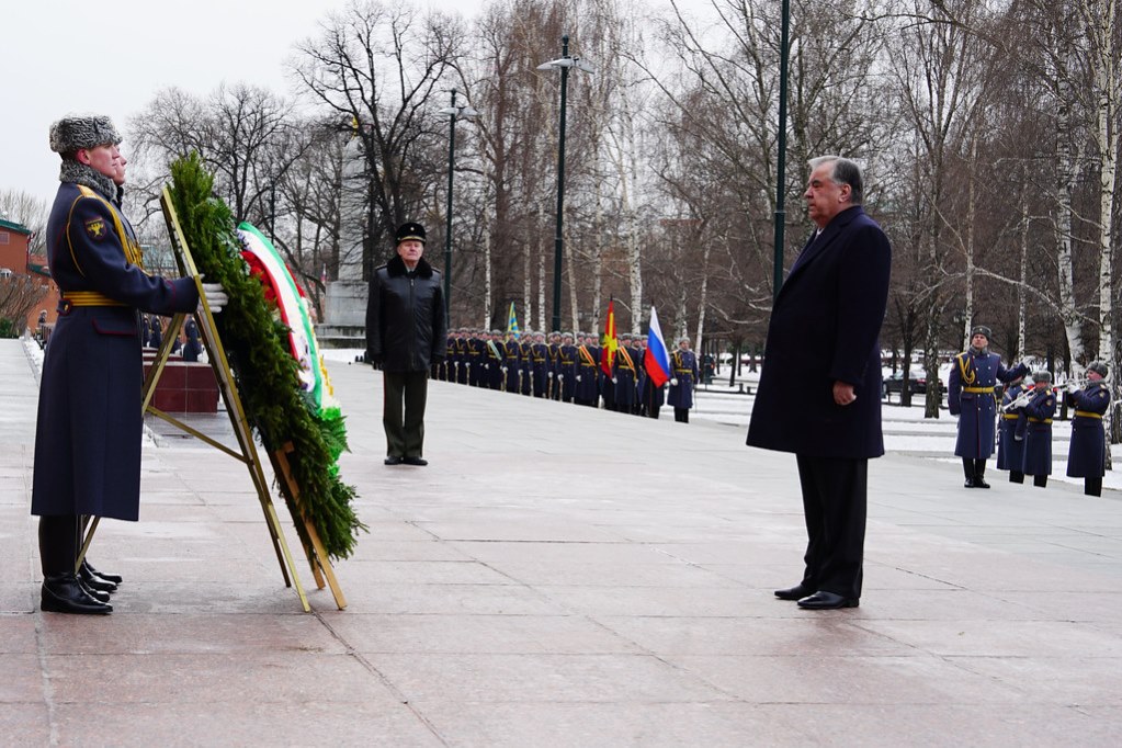 Гуфта мешавад, рӯзи 2-юми сафар бо гулчанбаргузорӣ бар пояи оромгоҳи Сарбози номаълум оғоз шуд. Эмомалӣ Раҳмон дар назди Гулхани абадӣ гулчанбар гузошта, бо дақиқаи хомӯшӣ хотираи қаҳрамонони и Русияро пос дошт. Сипас, баъд аз садоҳои бонг ва дақиқаи хомӯшӣ Суруди миллии Ҷумҳурии Тоҷикистон иҷро гардид.