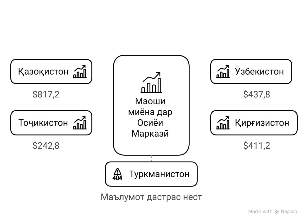 Оҷонсии радабандии Ranking.kz аввали соли равон бо истинод ба маълумоти Кумитаи байнидавлатии омори ИДМ хабар дод, ки то моҳи сентябри соли 2024 маоши миёна дар Қазоқистон қариб 2 баробар зиёдтар аз Ӯзбекистону Қирғизистон ва 4 баробар бештар аз Тоҷикистон буда, аз рӯи ин нишондиҳанда Қазоқистон дар байни давлатҳои минтақаи Осиёи Марказӣ пешсаф аст.