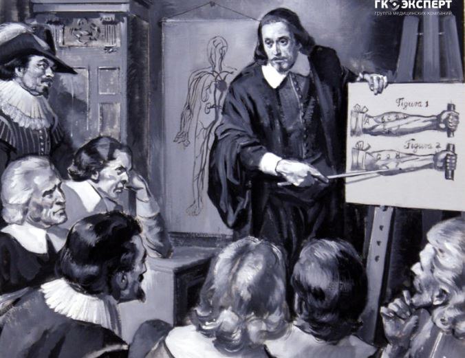 16 апрели соли 1618 олим ва табиби машҳури англис Вилям Ҳарвей дар як суханронии худ дар Лондон бори аввал дидгоҳашро оид ба низоми гардиши хун дар ҷисми инсон ва дигар ҳайвоноти гармхун баён намуд. Ӯ ҳисоб кард, ки хун дар ду доира ҳаракат мекунад: доираи хурд – тавассути шушҳо ва доираи калон – тавассути тамоми бадан.