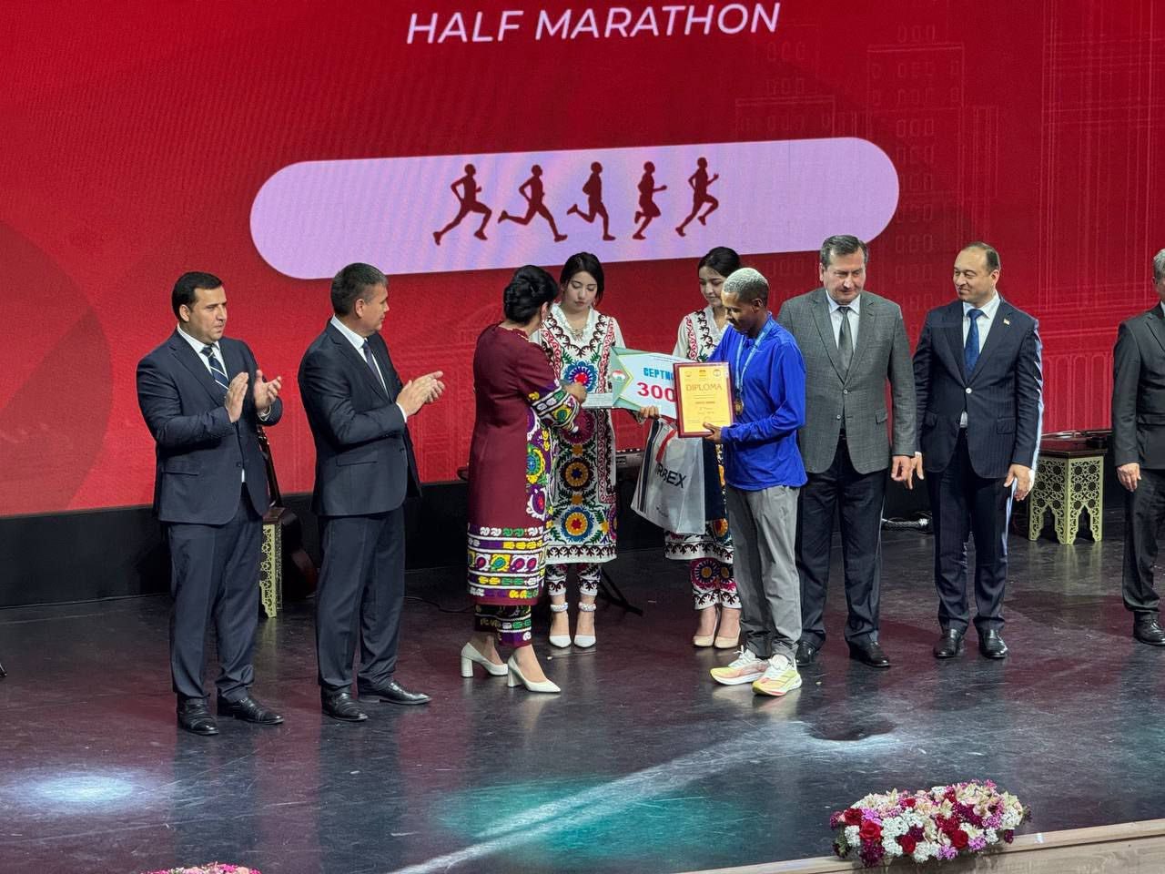 Дар рафти чорабинӣ ҳамчунин, ба ғолибони ниммарафони байналмилалӣ, ки субҳи дирӯз, 19-уми апрел ба ифтихори Рӯзи пойтахт баргузор шуд, ҷоиза ва мукофотпулӣ супурда шуданд.