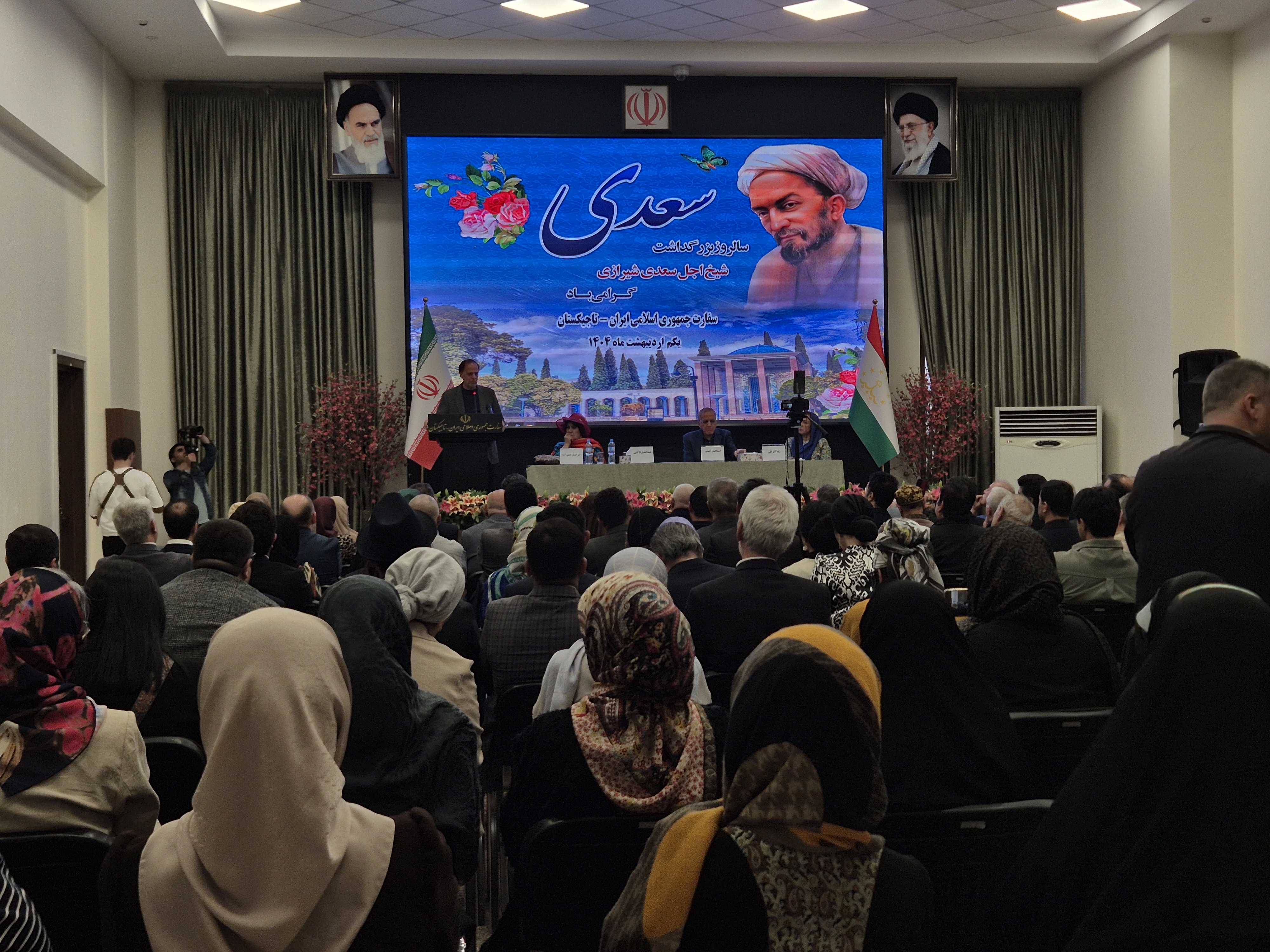 Нахуст Алиризо Ҳақиқиён, сафири Эрон дар Тоҷикистон ба минбар омада, аз Саъдии Шерозӣ ба унвони дарахти тановаре ном бурд, ки аз хоку обу фарҳанги мо бархостааст.