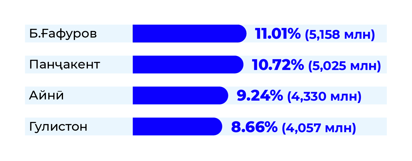 Саҳми шаҳру навоҳии зерин назаррас аст: