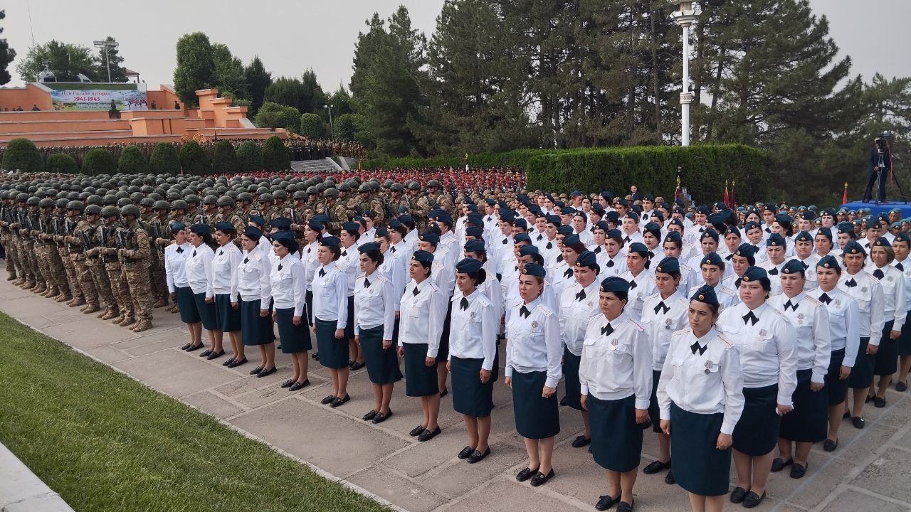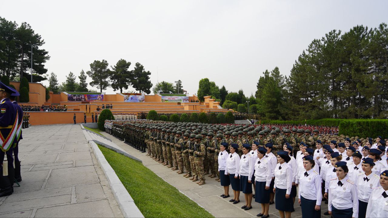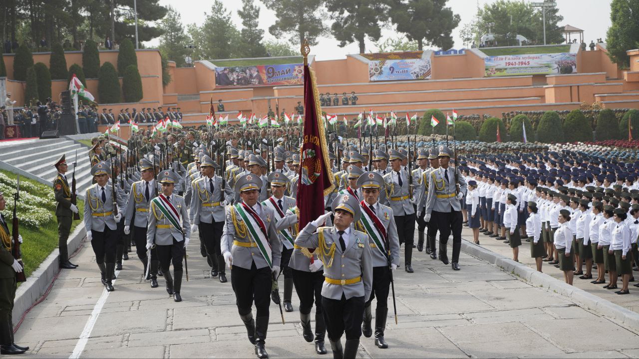 Қабл аз суханронӣ, ба Эмомалӣ Раҳмон, ки ҳамзамон Сарфармондеҳи Олии Қувваҳои Мусаллаҳи кишвар аст, генерал-лейтенант Эмомалӣ Собирзода, вазири мудофиа оид ба омодагии қушунҳои гарнизони Душанбе барои гузашти ҳарбӣ ба муносибати 80-солагии Ғалаба дар Ҷанги Бузурги Ватанӣ гузориш дод.