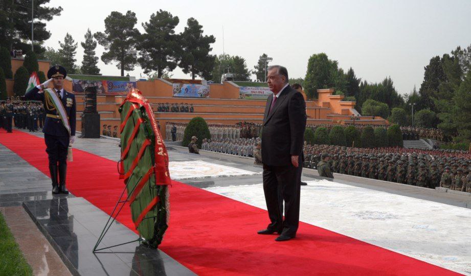 Эмомалӣ Раҳмон, раиси ҷумҳури Тоҷикистон имрӯз, 8-уми май ба ифтихори таҷлили 80-солагии Ғалаба дар Ҷанги Бузурги Ватанӣ (1941-1945) дар “Боғи Ғалаба”-и пойтахт дар назди “Оташи ҷовидон” гулчанбар гузошт ва дар гузашти ҳарбӣ иштирок кард. Ӯ ҳамчунин, ба ин муносибат шаҳрвандони кишварро табрик кард ва ба собиқадорон изҳори сипос гуфт.