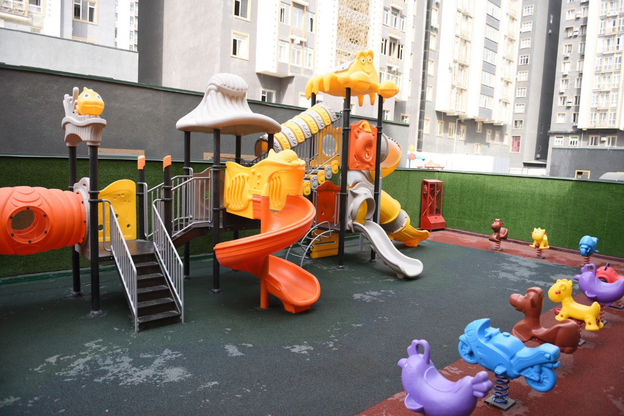 Бинои кӯдакистон 4-ошёнагӣ буда, омӯзишу парасторӣ дар он бо 3 забон тоҷикӣ, русӣ ва англисӣ сурат мегирад. Дар муассиса 45 нафар бо кор таъмин шудаанд.