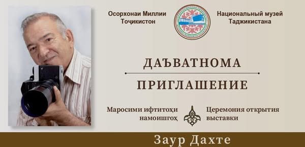 – Имрӯз соати 10:00 дар Осорхонаи миллии Тоҷикистон маросими ифтитоҳи намоиши аксҳои Заур Дахте, филмбардор ва аксбардори маъруфи тоҷик баргузор мегардад. Намоишгоҳ як ҳафта идома мекунад ва алоқамандон метавонанд аксҳои ӯро тамошо ва харидорӣ кунанд.