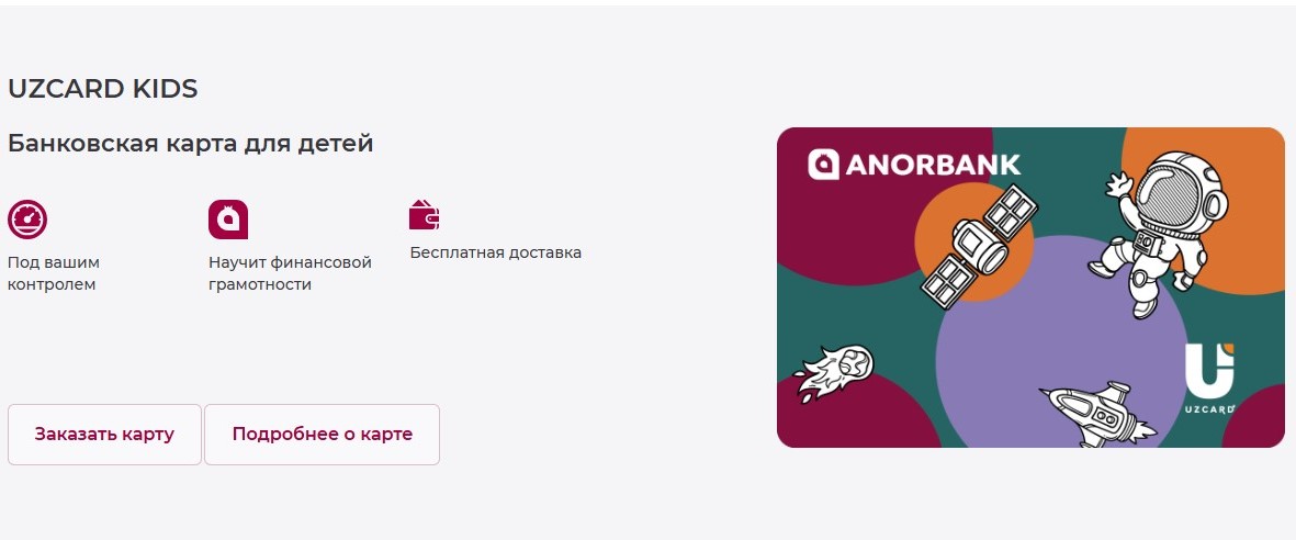 Дар Ӯзбекистон низ дар якчанд бонк, аз ҷумла "Anorbank", "Kapitalbank", "Garant bank" метавон корт барои кӯдакон дарёфт кард.