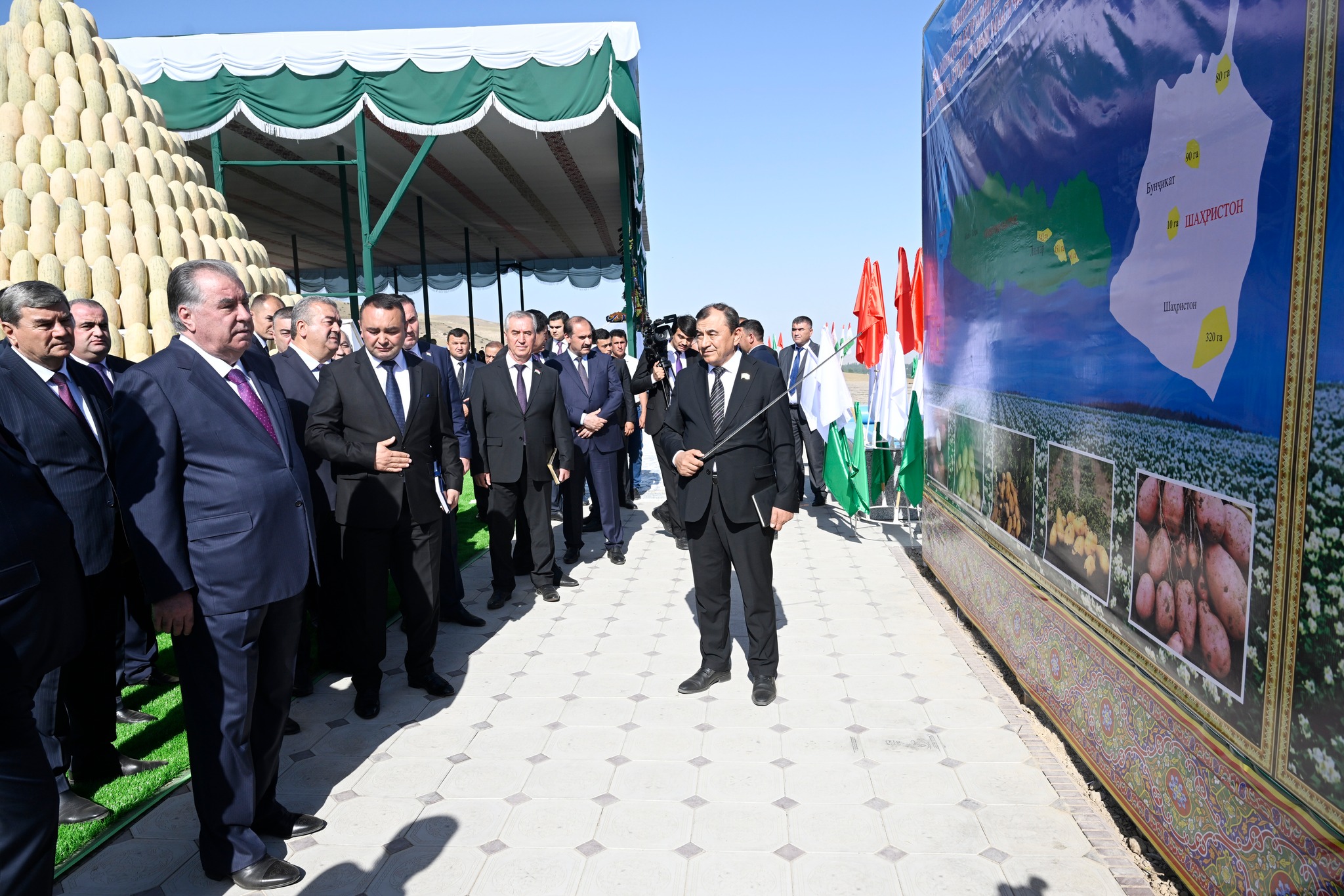 Ҳамчунин, дар ҳамин ҷо ба Эмомалӣ Раҳмон лоиҳаи заминҳои нави ҳамин сол обёришуда дар ноҳияҳои Деваштич, Кӯҳистони Мастчоҳ ва Шаҳристонро, ки дар онҳо кишти картошка гузаронида шудааст, муаррифӣ карданд. Таъкид гардид, ки ба ҳамин восита майдони кишти картошка дар ноҳияҳои Кӯҳистони Мастчоҳ 1053, Деваштич 816 ва Шаҳристон 501 гектарӣ нисбат ба дурнамо зиёд шуд.