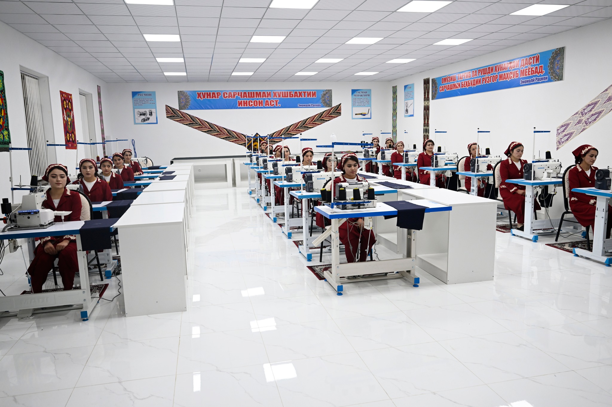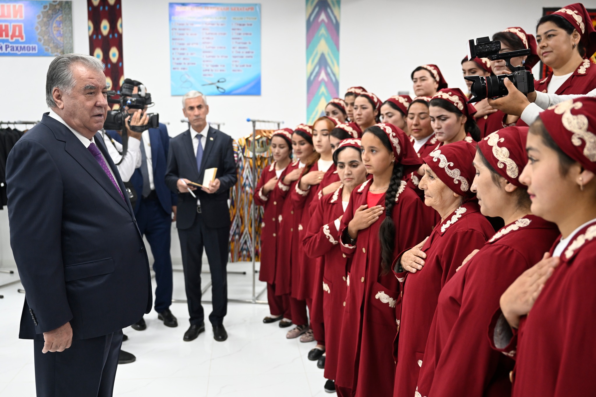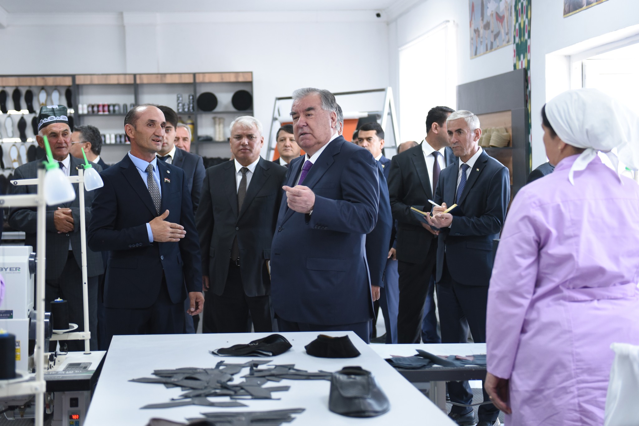 Роҳбари давлат ҳамчунин, дар деҳаи Басманда Коргоҳи дӯзандагӣ ва қолинбофии “Ёсуман”, ки дар майдони 420 метри мураббаъ бунёд шуда, дорои 10 дастгоҳи қолинбофӣ аст, ба истифода дод.