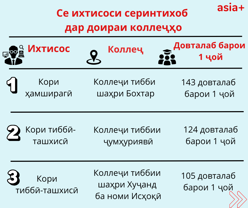 Аз ин ниҳод гуфтанд, имсол низ ихтисоси серинтихоб бахши тиббӣ буд.