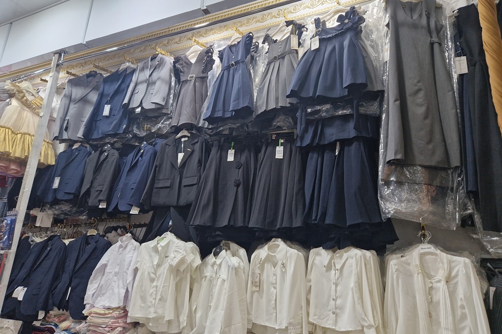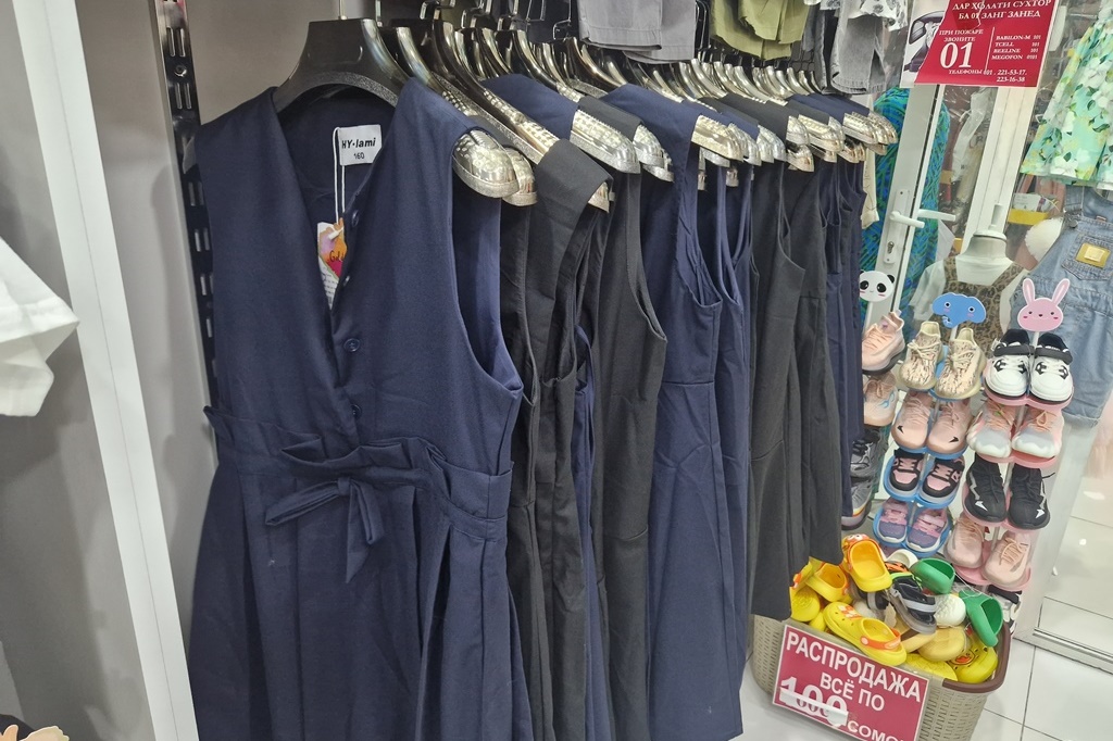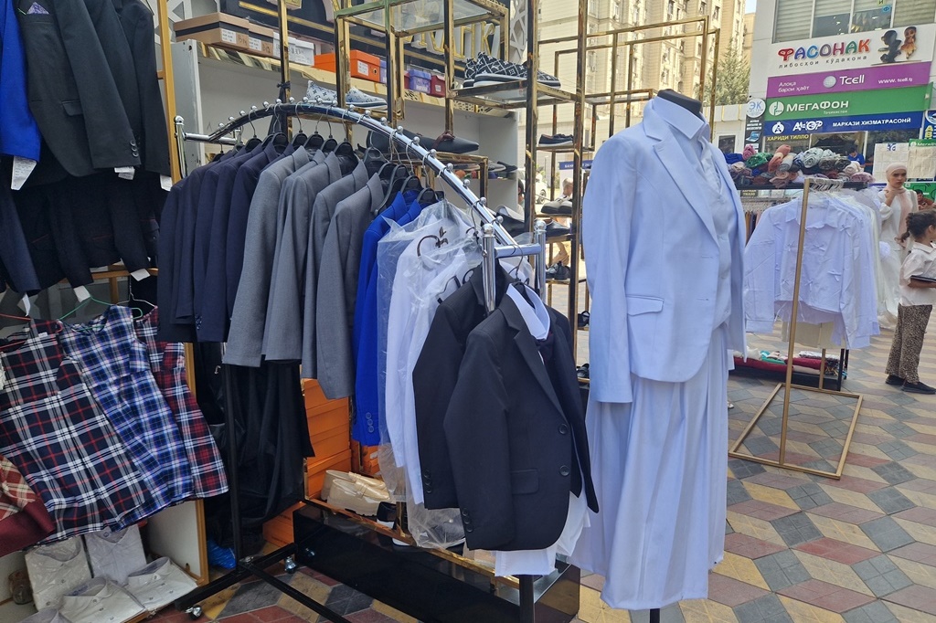 Куртаҳо дар ин ҷо аз 120 то 190 сомонӣ нарх доранд. Сарулибос барои духтарон дар ҳама ҷо бо нархи 250-300 сомонӣ, костюм барои писарон – 599 сомонӣ ва доман – бо нархи тақрибан 280 сомонӣ ба фурӯш гузошта шудааст.