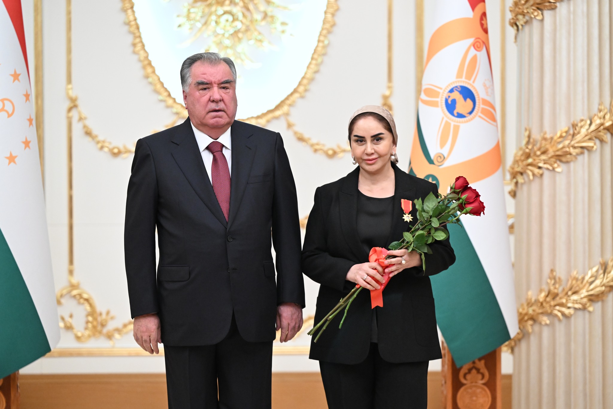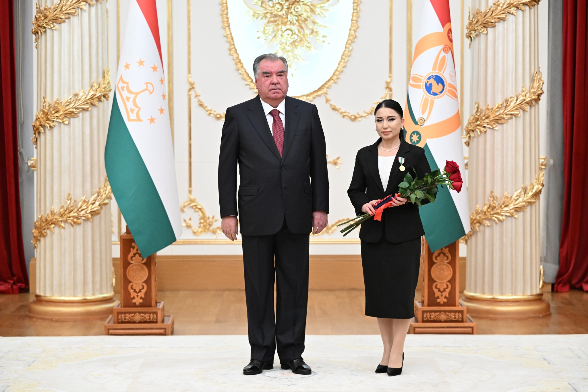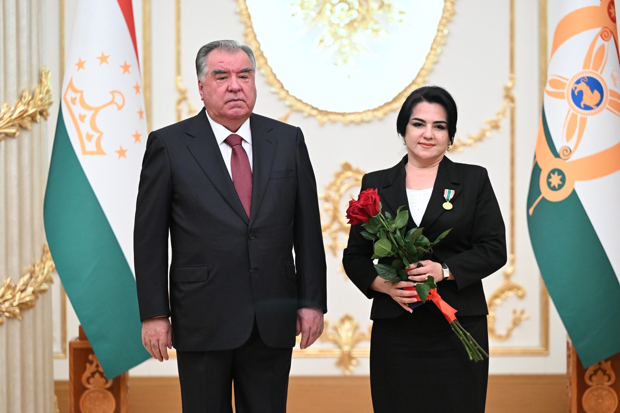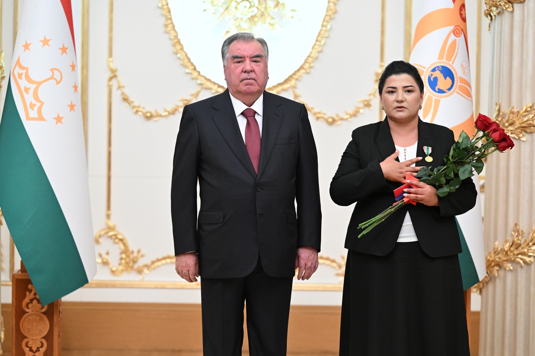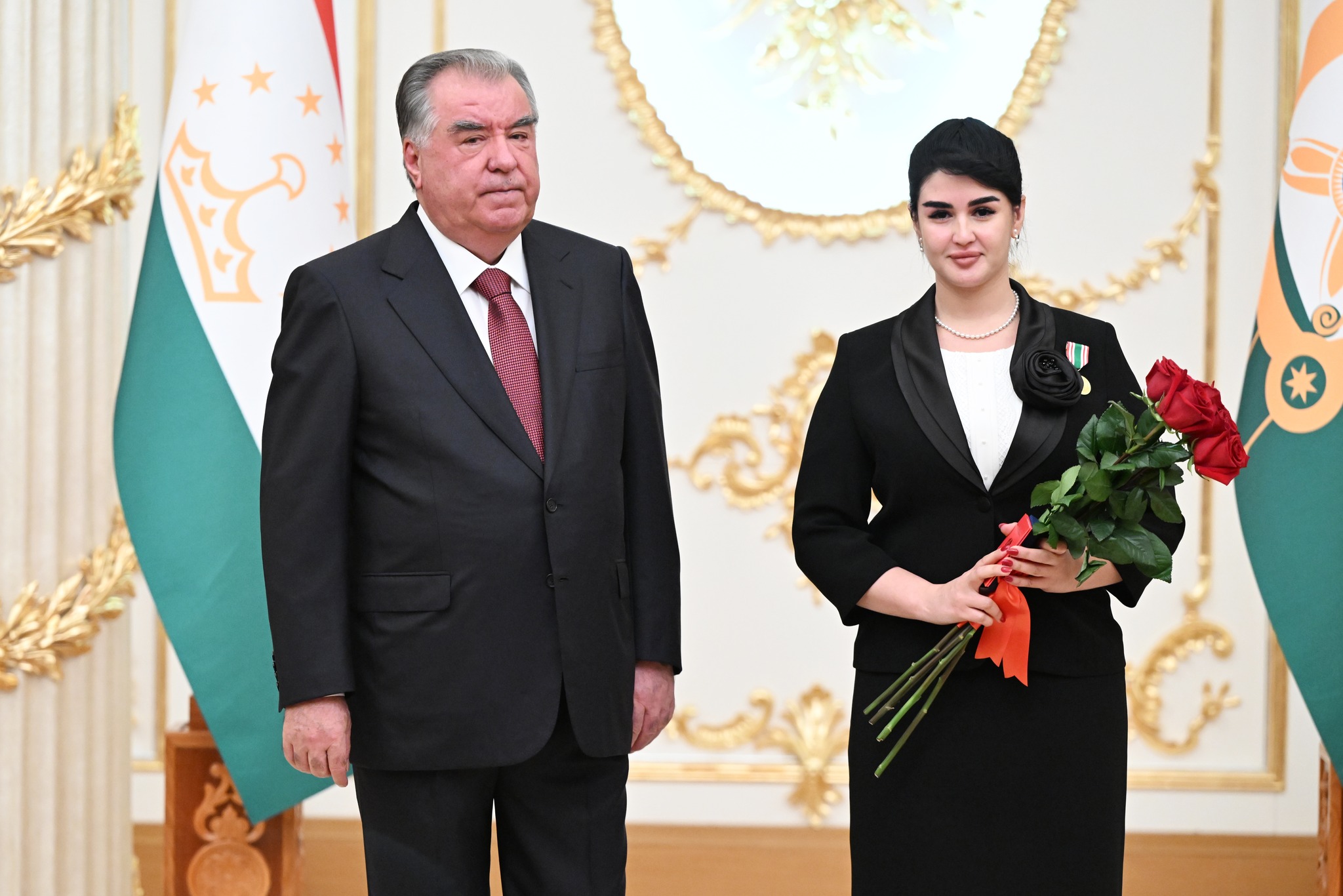 Дар аксҳое, ки хадамоти матбуотии президенти кишвар нашр кард, дида мешавад, ки Озода Раҳмон, роҳбари Дастгоҳи президент низ ҳаст ва тибқи иттилои ғайрирасмӣ, президент ба ӯ унвони Корманди шоиста додааст.