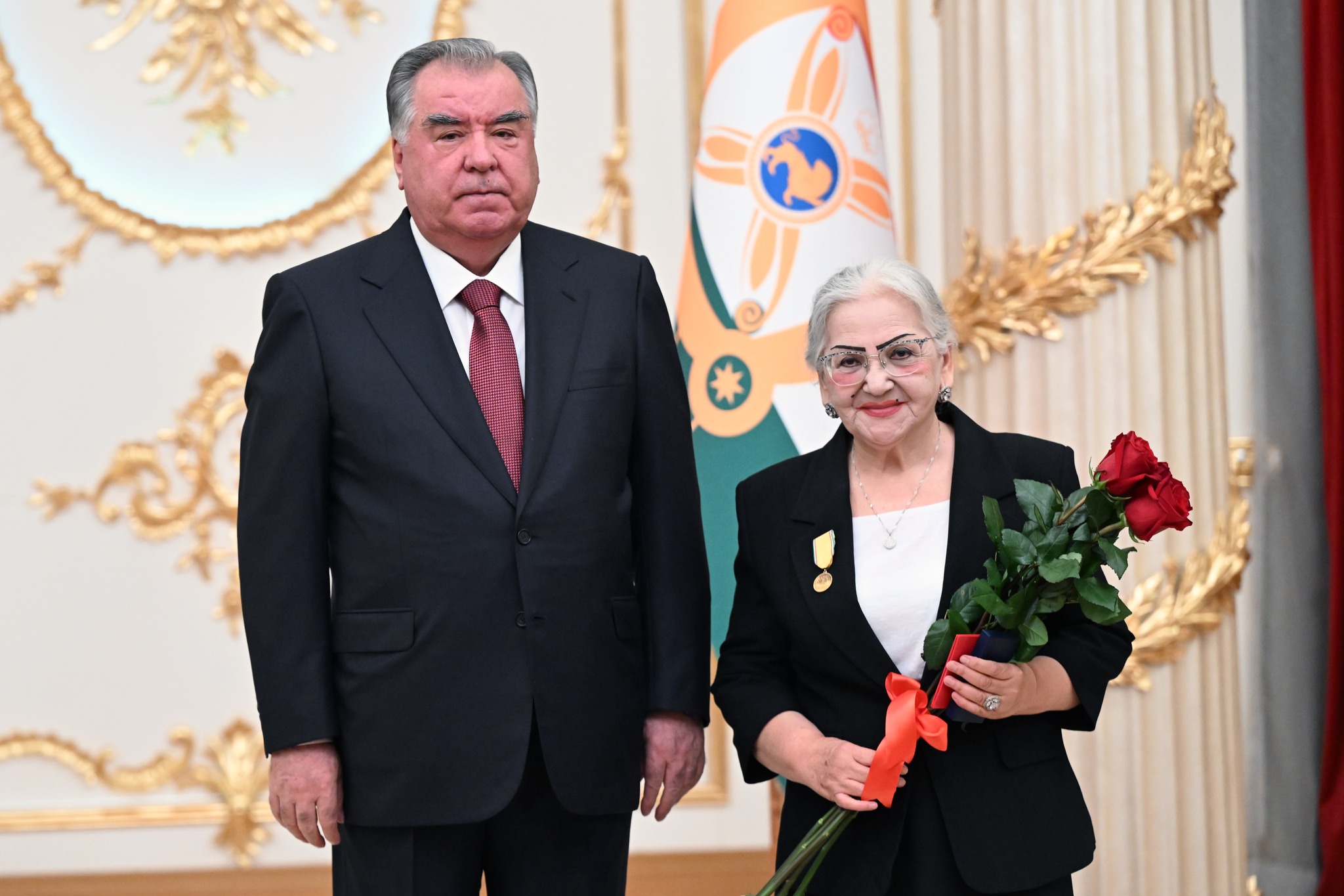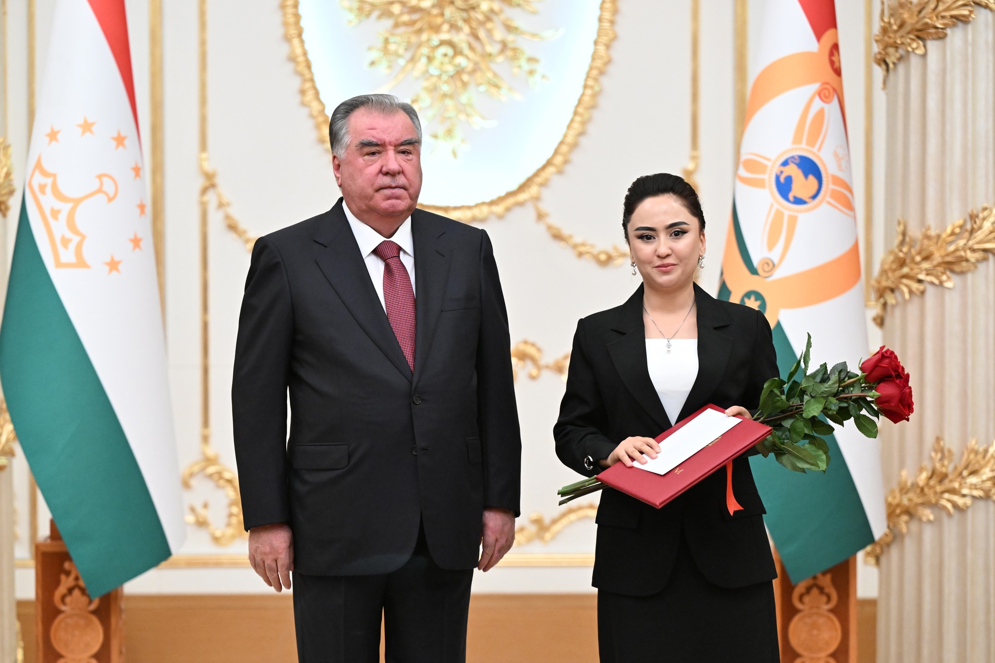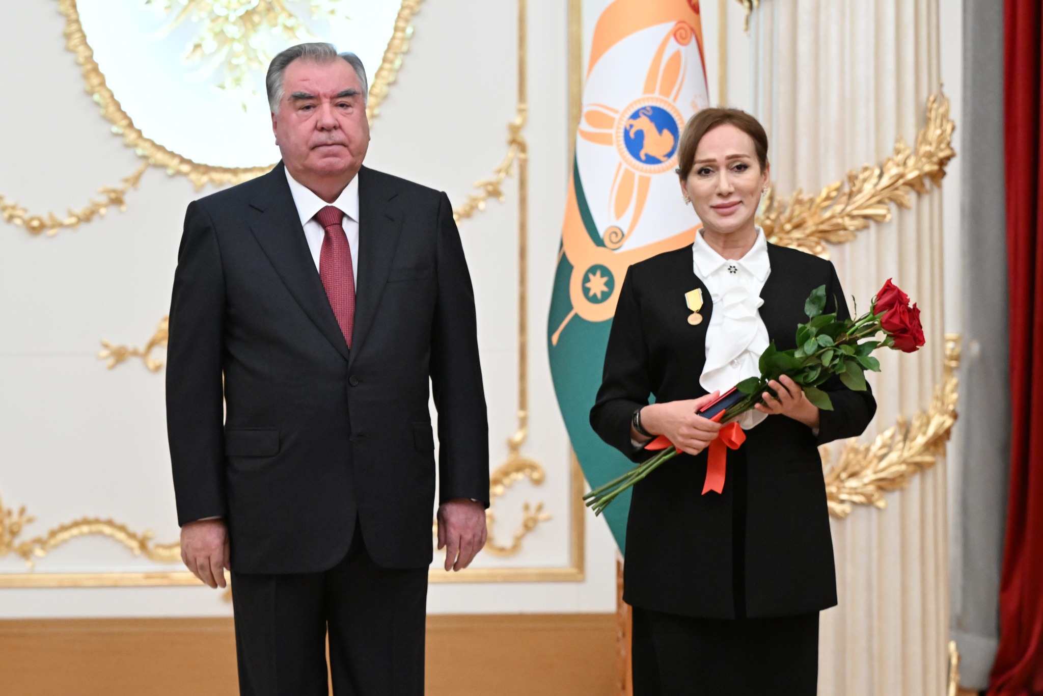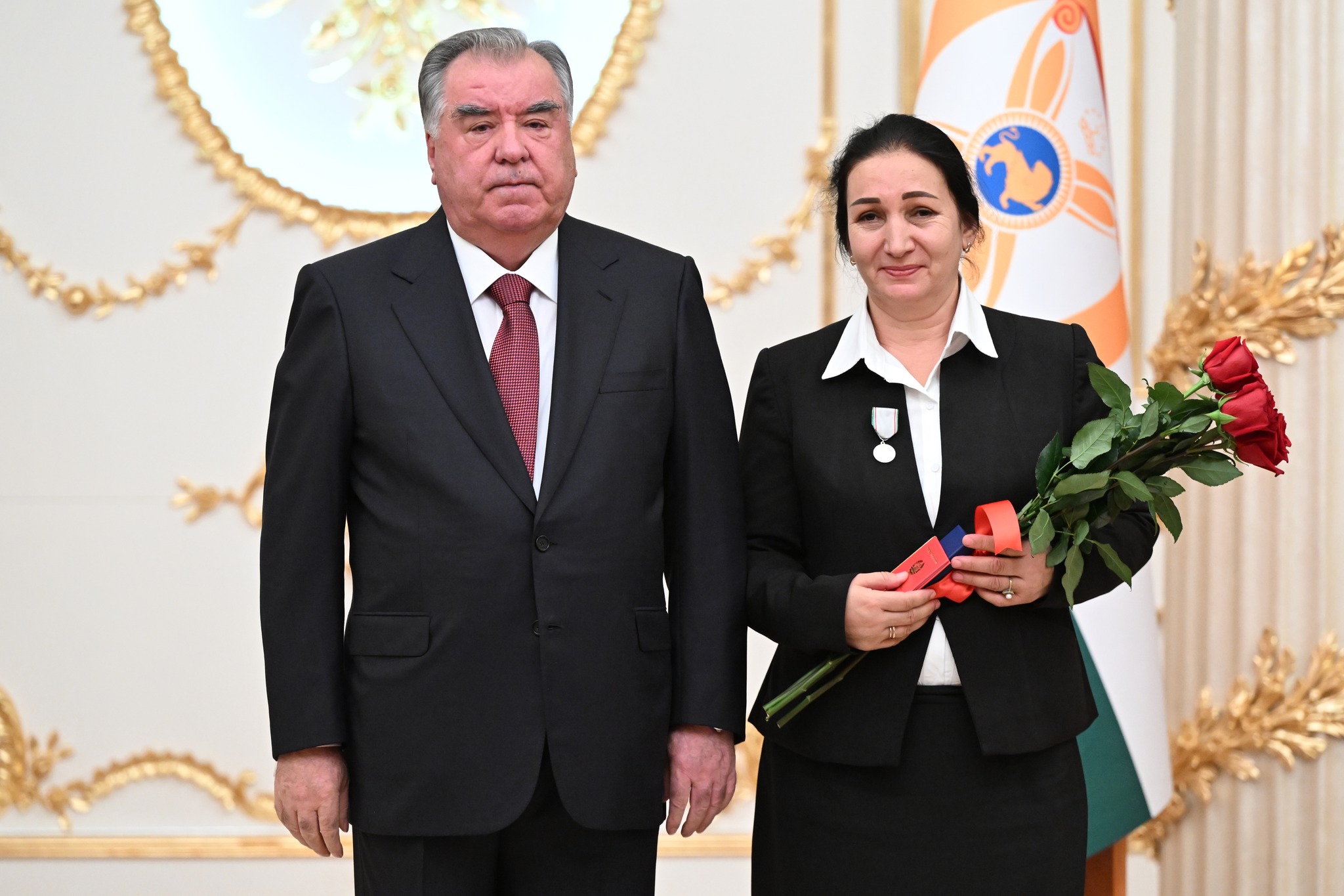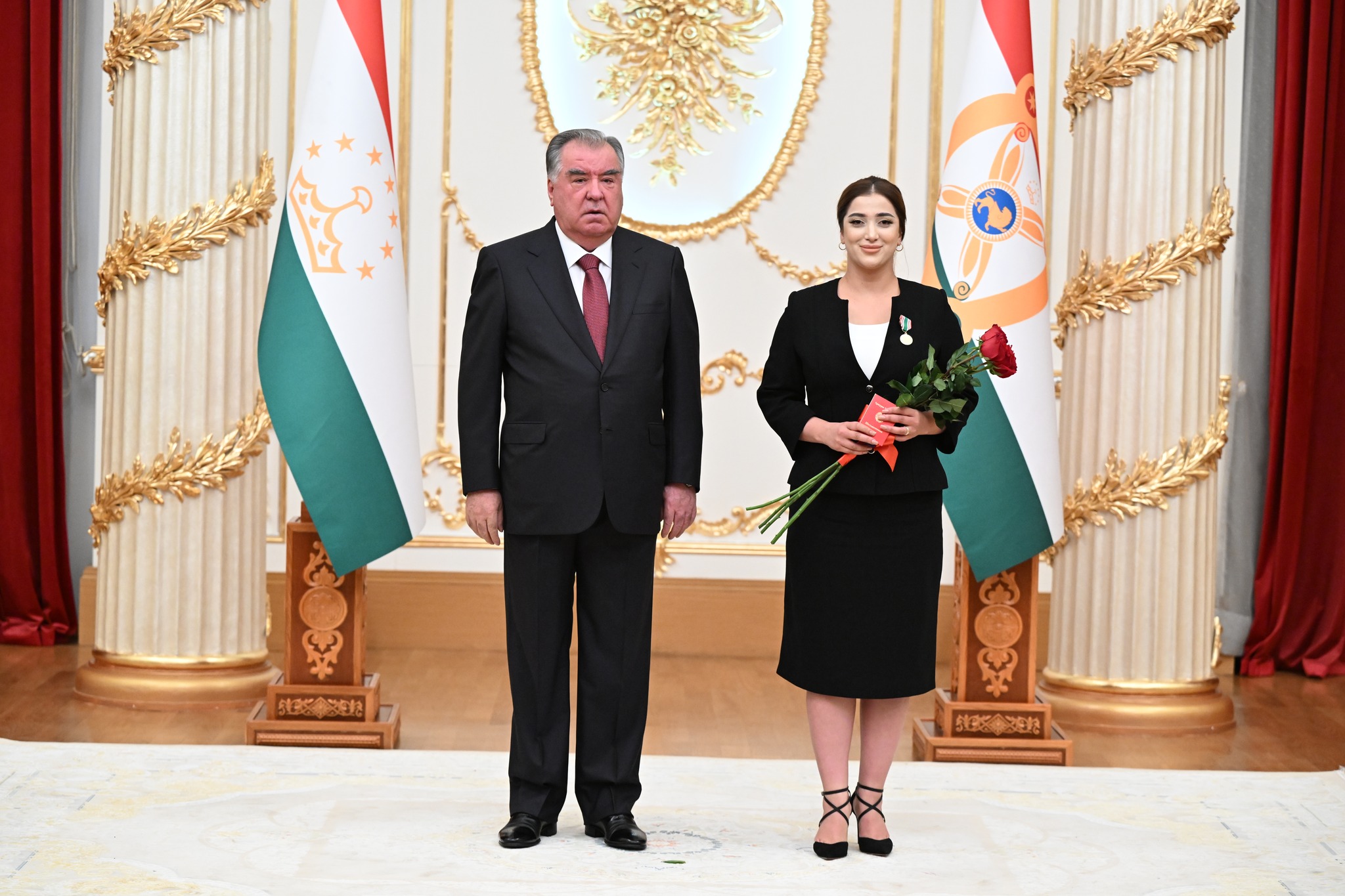 Дар аксҳое, ки хадамоти матбуотии президенти кишвар нашр кард, дида мешавад, ки Озода Раҳмон, роҳбари Дастгоҳи президент низ ҳаст ва тибқи иттилои ғайрирасмӣ, президент ба ӯ унвони Корманди шоиста додааст.