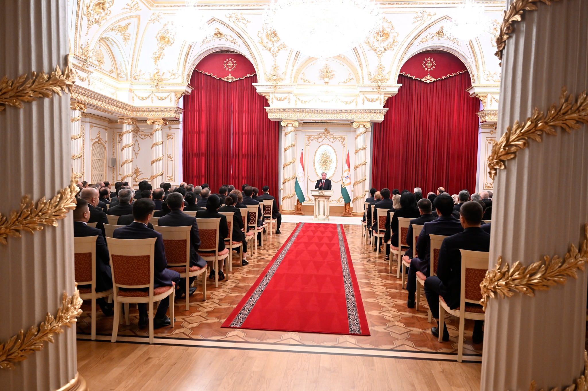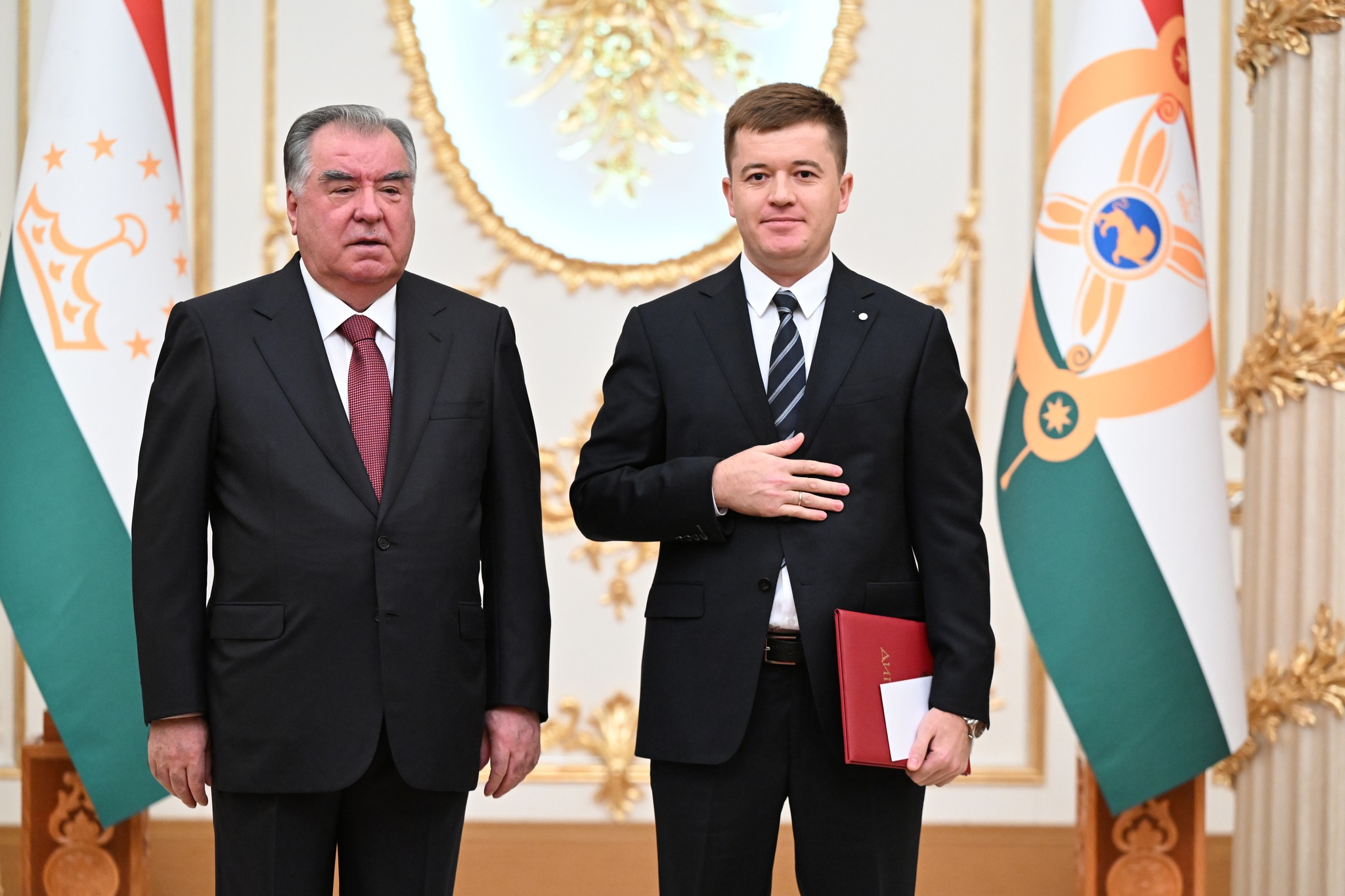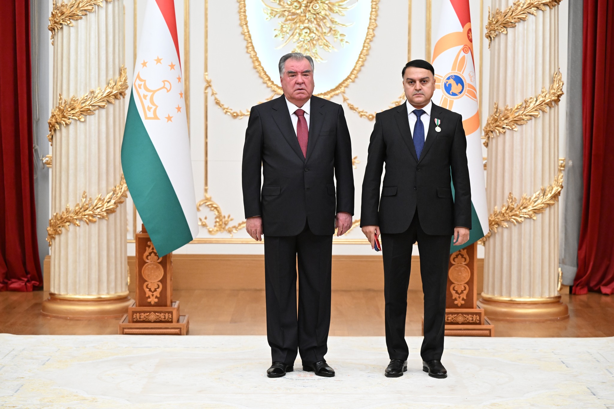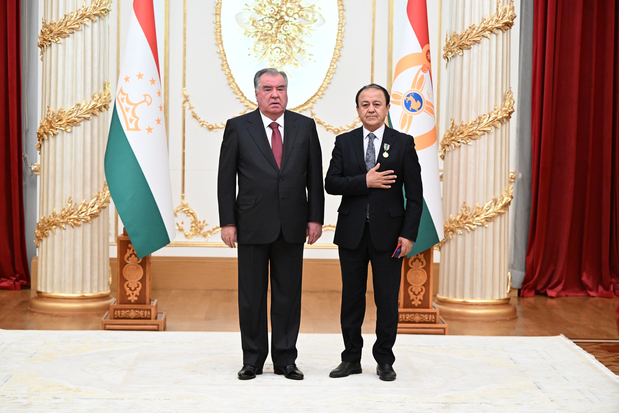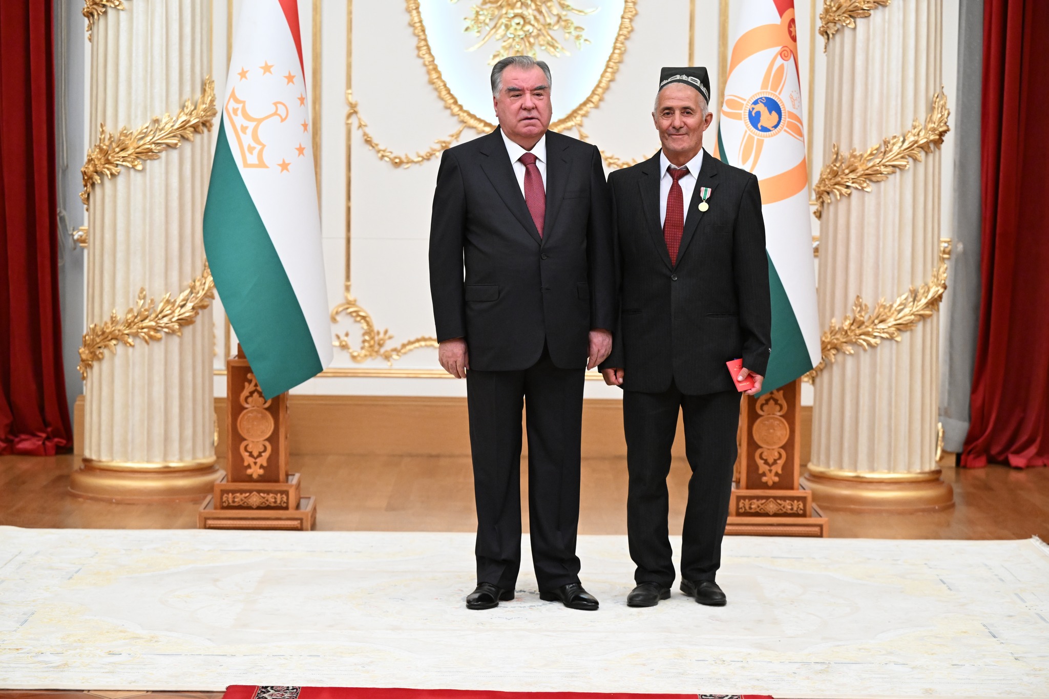 Дар аксҳое, ки хадамоти матбуотии президенти кишвар нашр кард, дида мешавад, ки Озода Раҳмон, роҳбари Дастгоҳи президент низ ҳаст ва тибқи иттилои ғайрирасмӣ, президент ба ӯ унвони Корманди шоиста додааст.