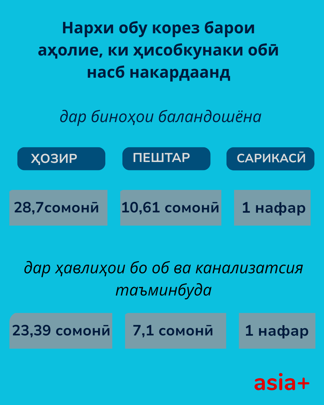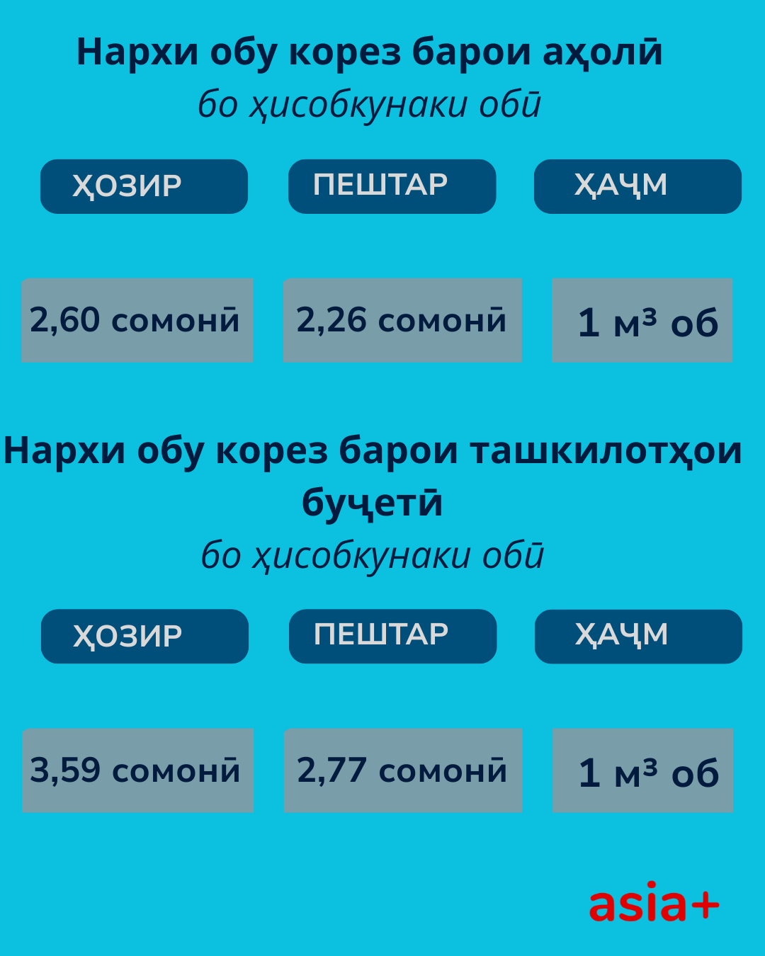 Аҳолӣ – 2,60 сомонӣ барои 1 м³ (пештар 2,26 сомонӣ);