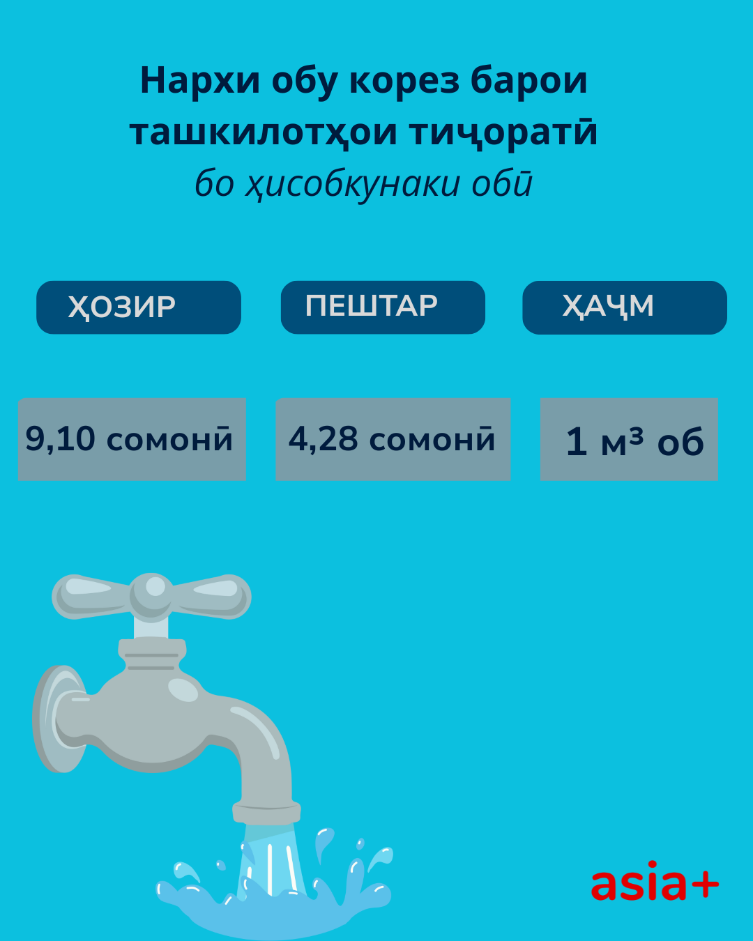 Ташкилоти тиҷоратӣ – 9,10 сомонӣ барои 1 м³ (пештар 4,28 сомонӣ).