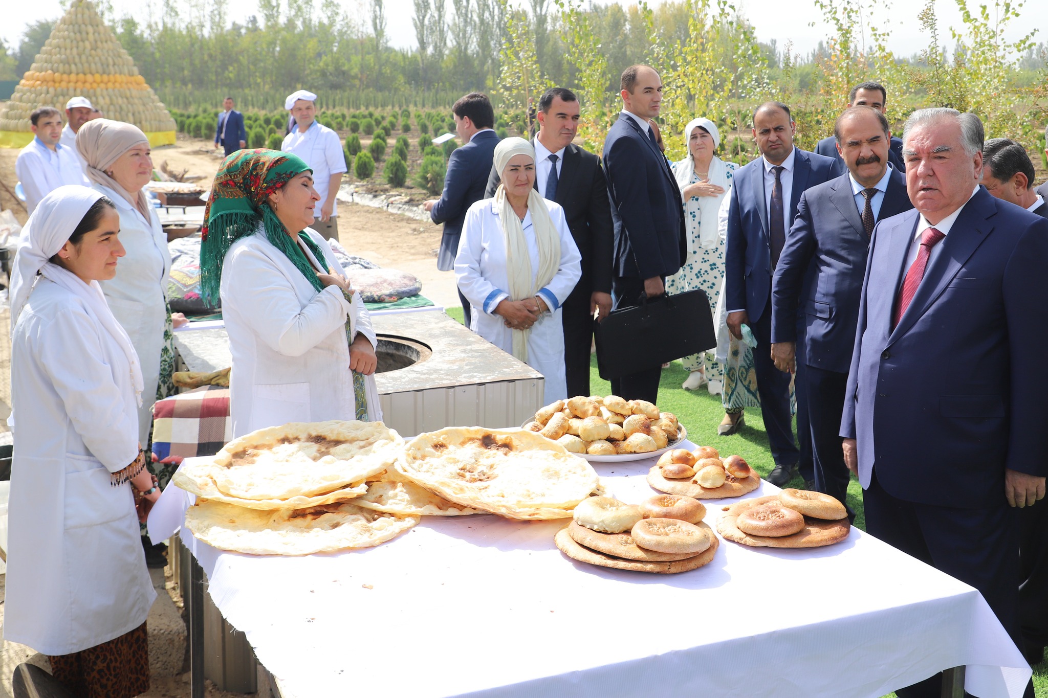 Раисҷумҳур ҳамзамон аз намоиши маҳсулоти кишоварзӣ ва анвои нону хурокҳои миллӣ боздид кардааст.
