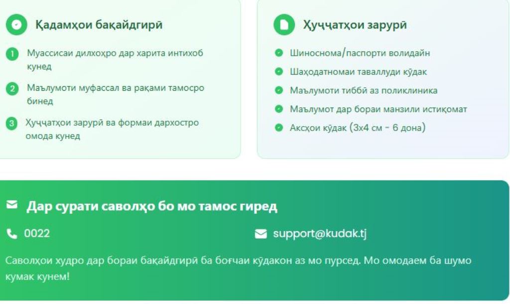 Ӯ зикр кардааст, ки "Kudak.tj" "барои ташкили омори ягона, равиши нав ва самараноки соддагардонии раванди бақайдгирии кӯдакон, осон кардани кори мураббиён ва рушди иртиботи волидайн бо муассисаи томактабӣ нақши назаррас дошта, муассисаҳои таълимии томактабиро вориди марҳилаи нав – муҳити рақамӣ месозад".