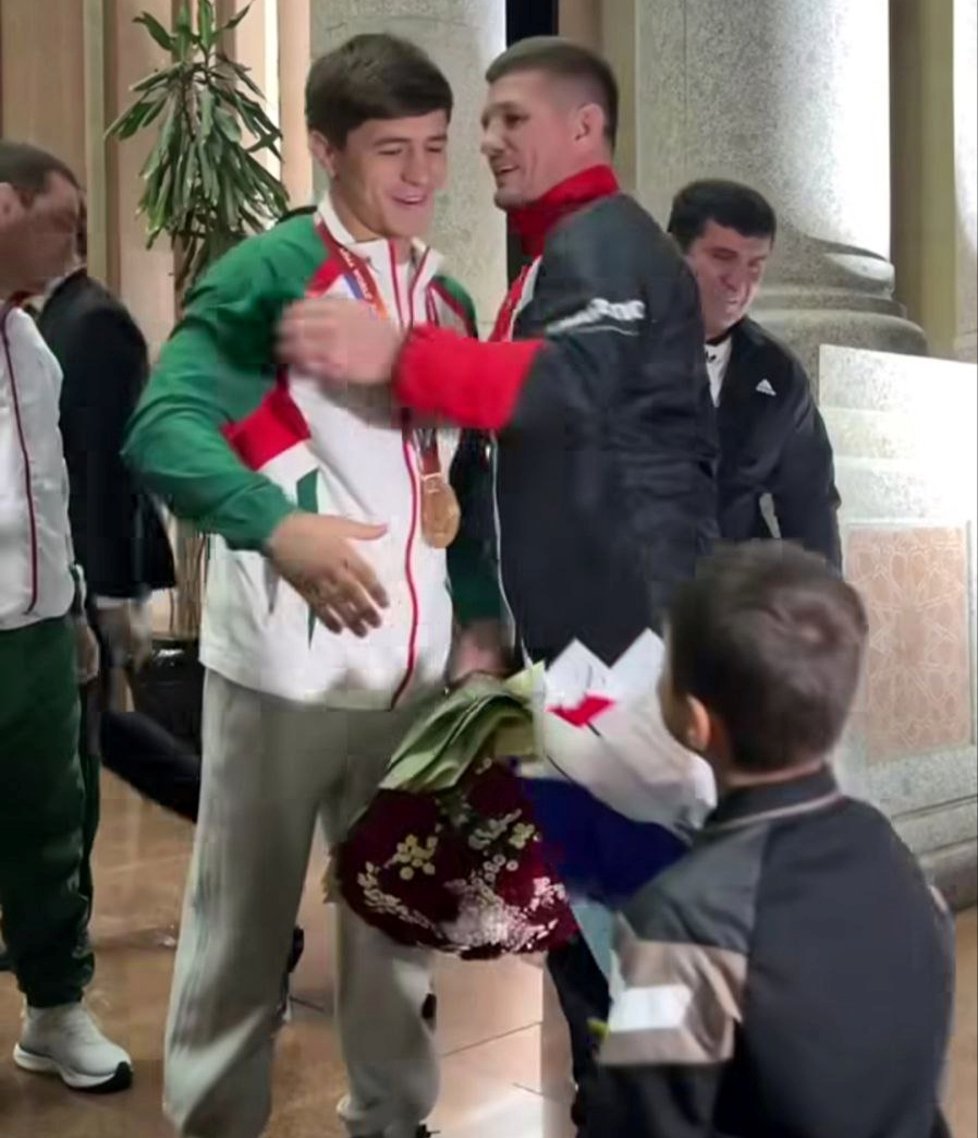 Қаҳрамони ҷавонро, ки дар Перу ба дарёфти медали тилло шарафёб гардид, бо чапакзаниҳои бардавом ва нидоҳои “Тоҷикистон ба пеш!” намояндагони сохторҳои соҳаи варзиши кишвар, мураббиён, наздикону пайвандон ва мухлисони ҷудо истиқбол карданд.
