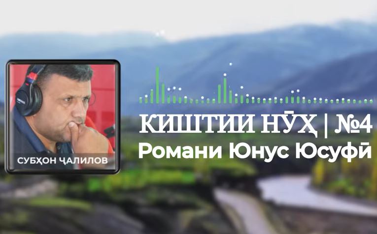 Лоиҳаи “Аудиокитоб” бо Субҳон Ҷалилов ба хондани китоби “Киштии Нӯҳ”-и Юнус Юсуфӣ, Нависандаи халқии Тоҷикистон оғоз кард. Дар нашри навбатӣ, қисми чоруми романи “Киштии Нӯҳ”-и Юнус Юсуфӣ манзури ҳаводорони китоб мегардад.