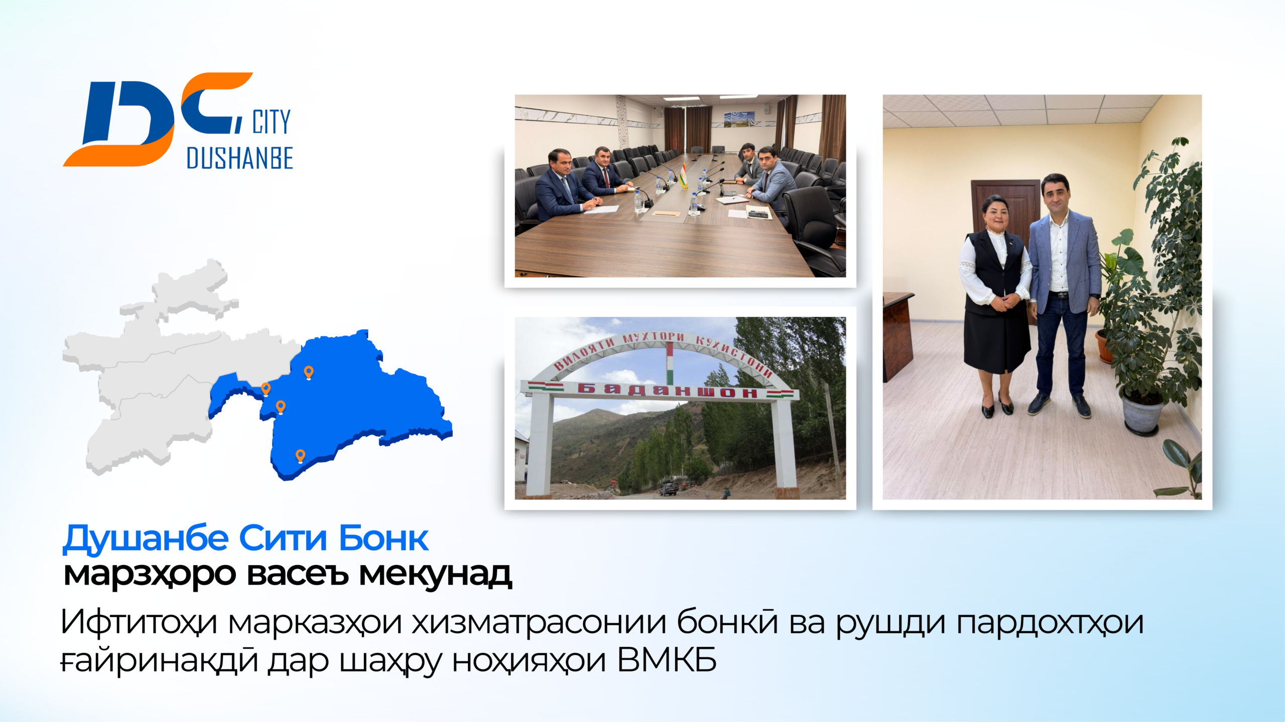 Дар Вилояти Мухтори Кӯҳистони Бадахшон дастрасӣ ба хизматрасониҳои молиявӣ тадриҷан рушд мекунад. Душанбе Сити Бонк нақша дорад, ки дар наздиктарин вақт марказҳои нави хизматрасонии бонкиро дар ноҳияҳои Мурғоб, Ванҷ ва Ишкошим кушояд.